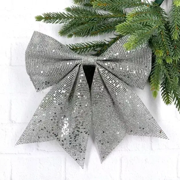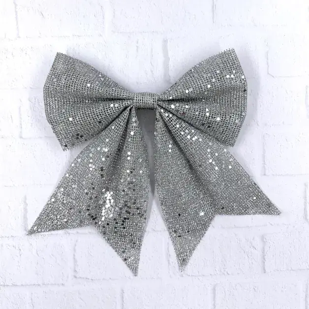 Шикарный блеск банта «Бриджит», усыпленный пайетками, способен пленить каждого! Это серебристое чудо сделает вашу новогоднюю елочку настоящей королевой новогодней ночи и поднимет настроение всем без исключения. Объемный аксессуар выглядит нарядно и достаточно броско. И если вы любите крупные и яркие украшения, то этот бант просто создан для вас!