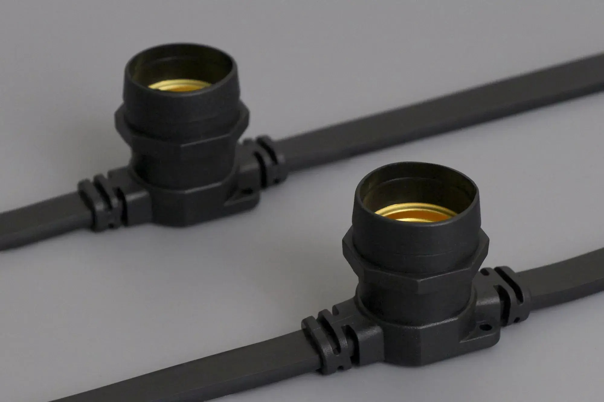 Световое украшение Белт-лайт имеет широкий спектр применения, его можно использовать для решения как профессиональных задач: украшение сцен, подиумов, рекламных щитов, витрин магазинов, коммерческих объектов, так и в повседневной жизни: летние веранды, балконы, беседки. Изделие представляет из себя шлейф на котором расположены патроны под лампы с цоколем Е27. Патрон прорезиненный, материал цоколя - латунь. Степень пылевлагозащиты IP65, при условии расположения цоколей вниз. Используется со светодиодными лампами, использование ламп накаливания не предусмотрено. Резка осуществляется после каждого патрона.