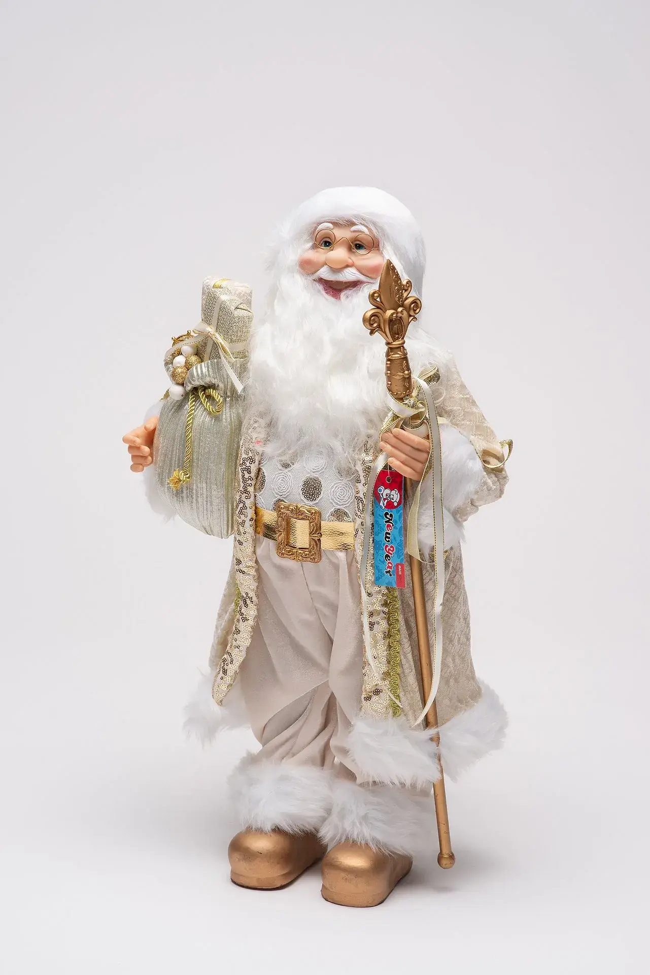Игрушка «Королевский Дед Мороз в золотом наряде» выглядит очень богато и наверняка придется по душе вашему хорошему другу или родственнику. И дети, и взрослые, увидев эту игрушку, придут в восторг. А если вы поставите его под елку белого или зеленого цвета, ваше жилище заметно преобразится.