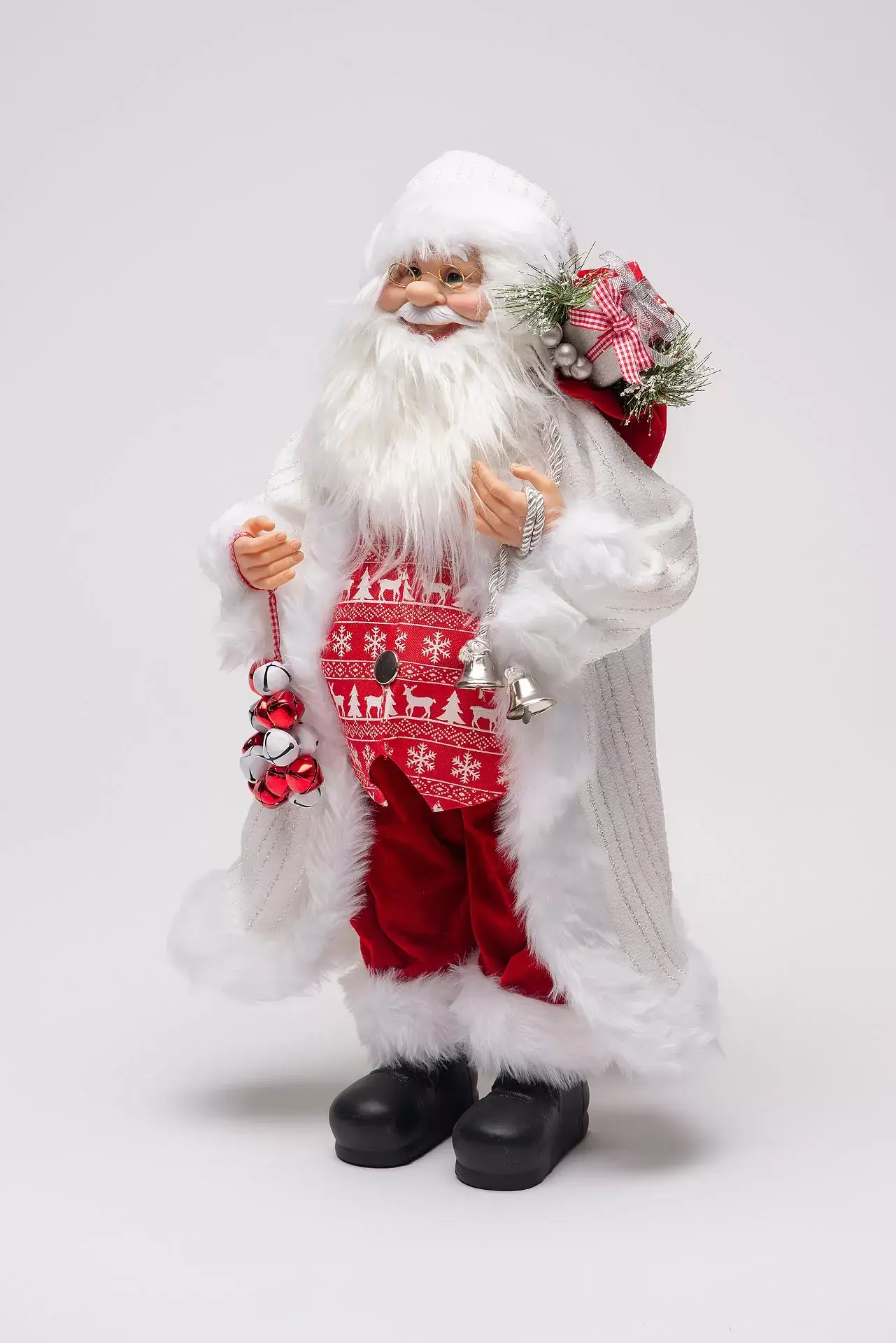 Если среди ваших гостей окажется «Обаятельный весельчак», скучать не придется! Предлагаем вашему вниманию куклу Деда Мороза в роскошной белоснежной шубе и элегантном расшитом жилете красного цвета. Такой красавчик вызовет улыбку и неподдельное восхищение как у детей, так и у взрослых. С «Обаятельным весельчаком» праздник будет незабываемым! Высота игрушки – 45 и 60 см.