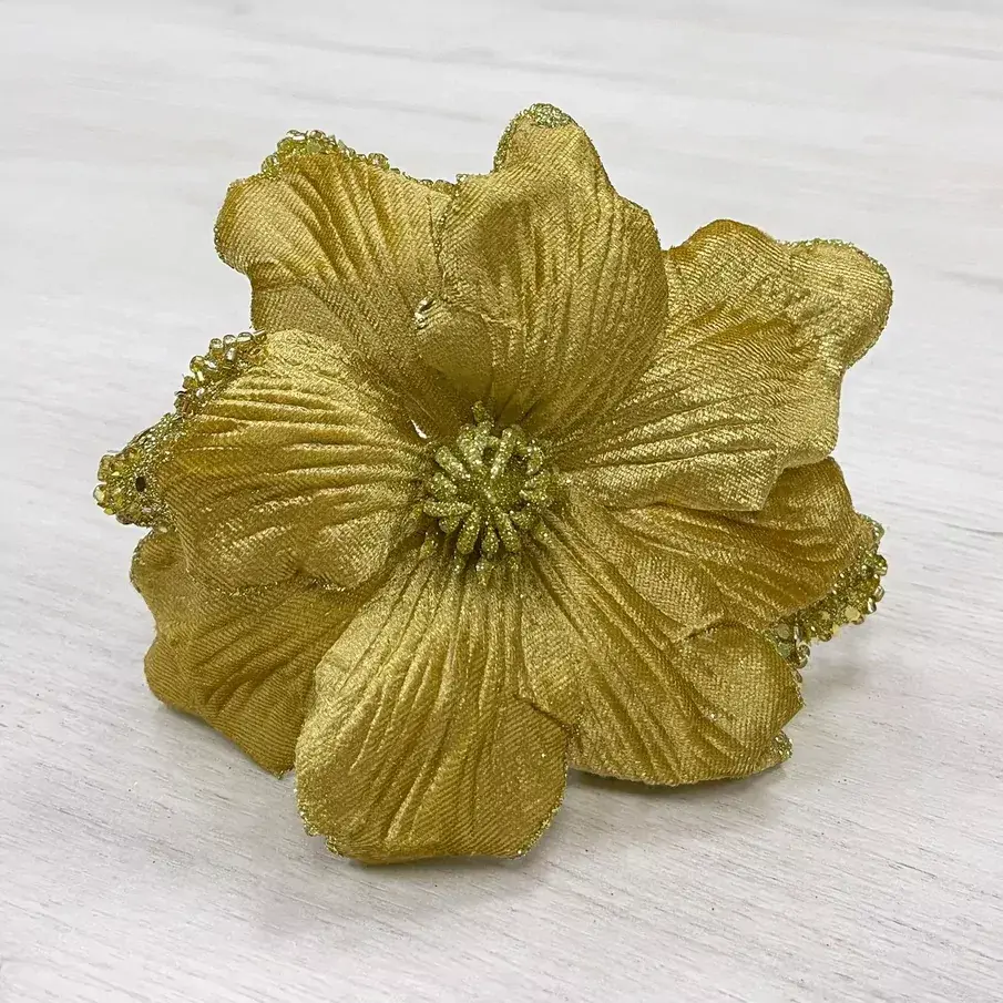 Лето, море, пляж, колдовской аромат магнолий… Фирма Christmas De Luxe предлагает вам устроить себе подобный курорт в новогоднюю ночь, ведь в минувшем году вы хорошо поработали. Декоративный цветок «Магнолия» на модной клипсе представлен в четырёх вариантах: нежный голубой, шикарный золотой, дерзкий красный, изысканный серый. Мы уверены, вы сумеете выбрать то, что подойдёт именно вам!