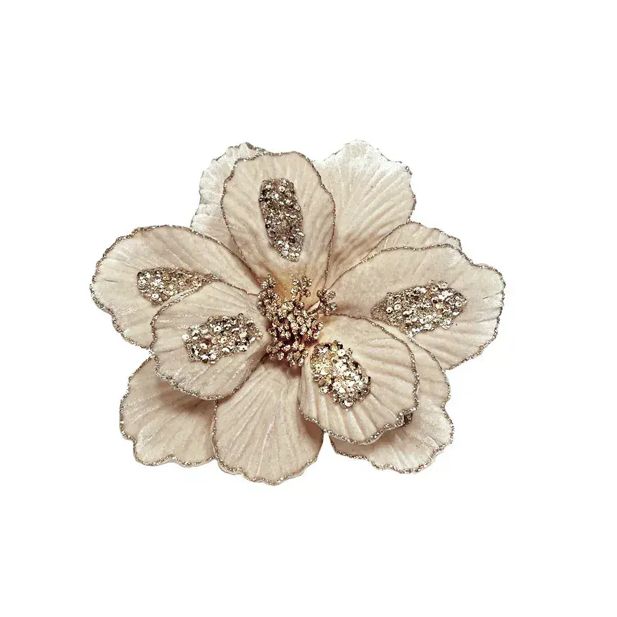 Любите тепло, юг, море, магнолии? Тогда почему бы не подарить себе кусочек юга в новогоднюю ночь? Елочное украшение на клипсе «Магнолия» – все, что для этого нужно! Вы не находите, что от этой загадочной красавицы цвета шампань повеяло неповторимым южным ароматом?