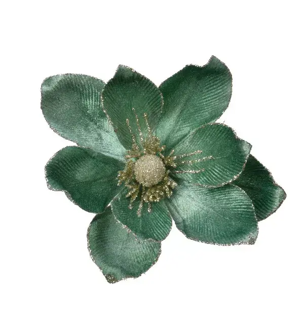Елка в цветах и бутонах – где, кроме ассортимента компании Kaemingk можно найти такое диво? Зеленые бархатистые магнолии словно только сорваны с дерева. Их крупные раскрытые лепестки напоминают о лете и солнце. Невероятный контраст – за окном холод и снег, вот-вот придет Дед Мороз с подарками, а на вашей елке распускаются цветы! Цветочная тема в последние годы буквально «оккупировала» модные интерьеры и стили. Винтаж, шебби-шик, гламур, эко, даже рустик или кантри – везде цветы найдут свое применение. А уж тем более такие шикарные магнолии от Kaemingk. Все детали проработаны до мельчайших нюансов – пестики, тычинки, сердцевинки, даже слегка увядшие края лепестков. Золото на зеленом фоне смотрится очень благородно и стильно. Цветы крепятся на ветки надежными клипсами. Не бойтесь оригинально украшать новогоднее дерево – красоты и волшебства станет только больше!