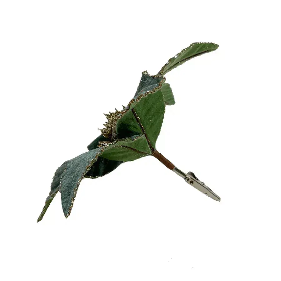 Декоративные цветы на клипсе актуальны уже не первый сезон. На сей раз мы хотим предложить вам свежую идею – «Пуансеттию» изысканного пыльно-зеленого цвета. Пышный цветок смотрится оригинально, утонченно, и мы уверены, что он придется вам по душе.