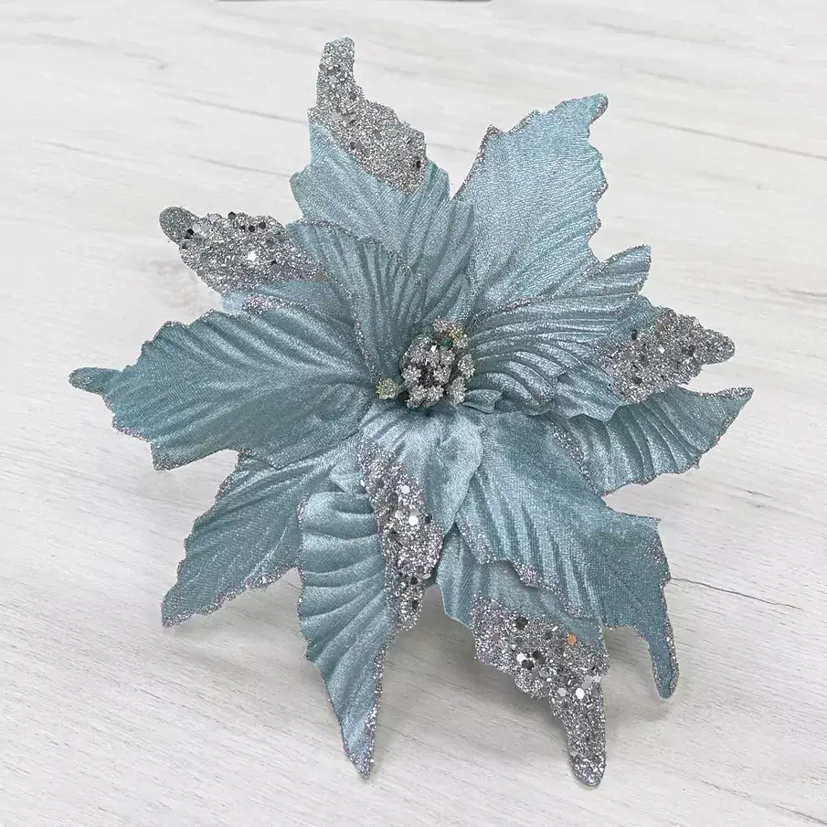 Готовясь к долгожданной ночи, большинство из нас становятся декораторами, украшая новогодние елки. Добавить яркие, свежие и оригинальные нотки к образу новогодней красавицы легко с рождественскими цветами «Шанель». Он крепится с помощью клипсы, каждый лепесток украшен множеством блесток. Такой рождественский цветок будет смотреться на ёлочке стильно и празднично и сможет радовать Вас не один год.