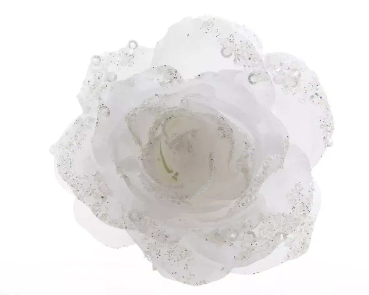 Представьте себе новогоднюю ель, на которой чудесным образом распустились белоснежные розы. Картина восхитительная! Закрепите ее на хвойной лапке и увидите, какой нежностью заиграет торжественное убранство лесной гостьи.
