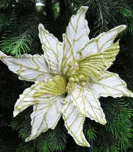 Готовясь к долгожданной ночи, большинство из нас становятся декораторами, украшая новогодние елки. Добавить яркие, свежие и оригинальные нотки к образу новогодней красавицы легко с рождественскими цветами «Шанель». Он крепится с помощью клипсы, каждый лепесток украшен множеством блесток. Такой рождественский цветок будет смотреться на ёлочке стильно и празднично и сможет радовать Вас не один год.