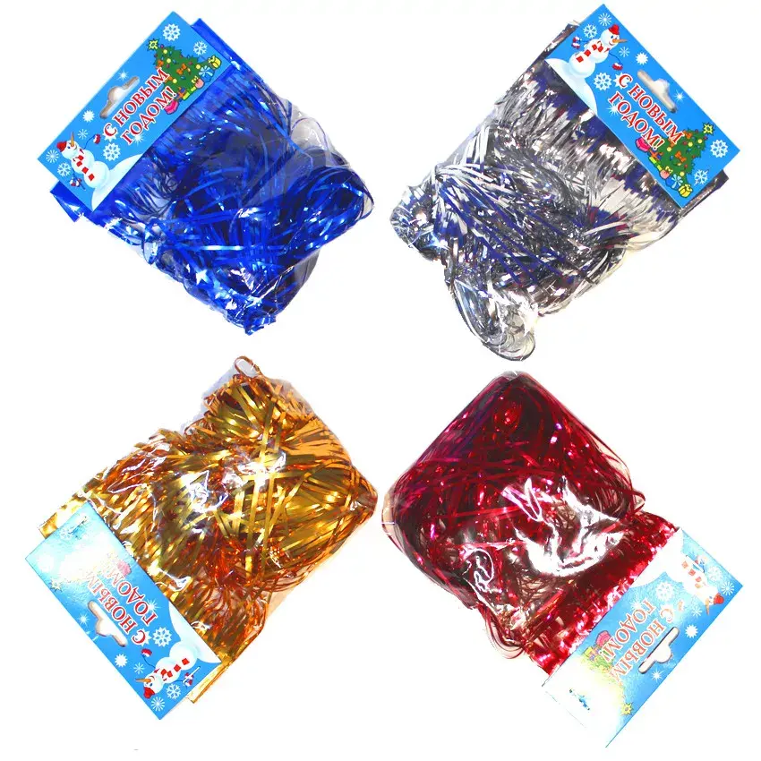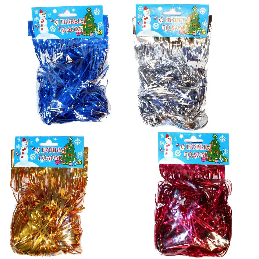 Еще один ретро-привет – елочный дождик! Вам не кажется, что он незаслуженно забыт? Мы спешим исправить положение и предлагаем вашему вниманию елочный дождь в двух холодных и двух теплых цветах. Синий и серебряный дождь напоминают изумительно красивый водопад. Красный и золотой вызывают в памяти нежнейший шелк, ласкающий кожу. Вот видите, дождик рождает исключительно приятные ассоциации!