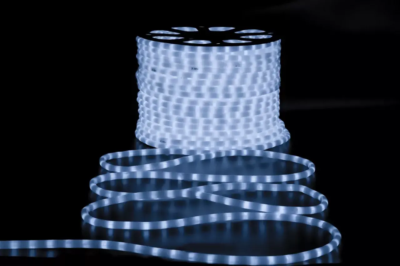 Дюралайт светодиодный 2-х проводной, диаметр 13 мм., 220В, холодные белые LED лампы 36 шт на 1 м., бухта 100 м., матовый, статика, Teamprof (TPF-DL-2WHM-100-240-W) – купить за 32 000 ₽ | Мир Ёлок — ваш лучший выбор для создания волшебной атмосферы на Новый год!