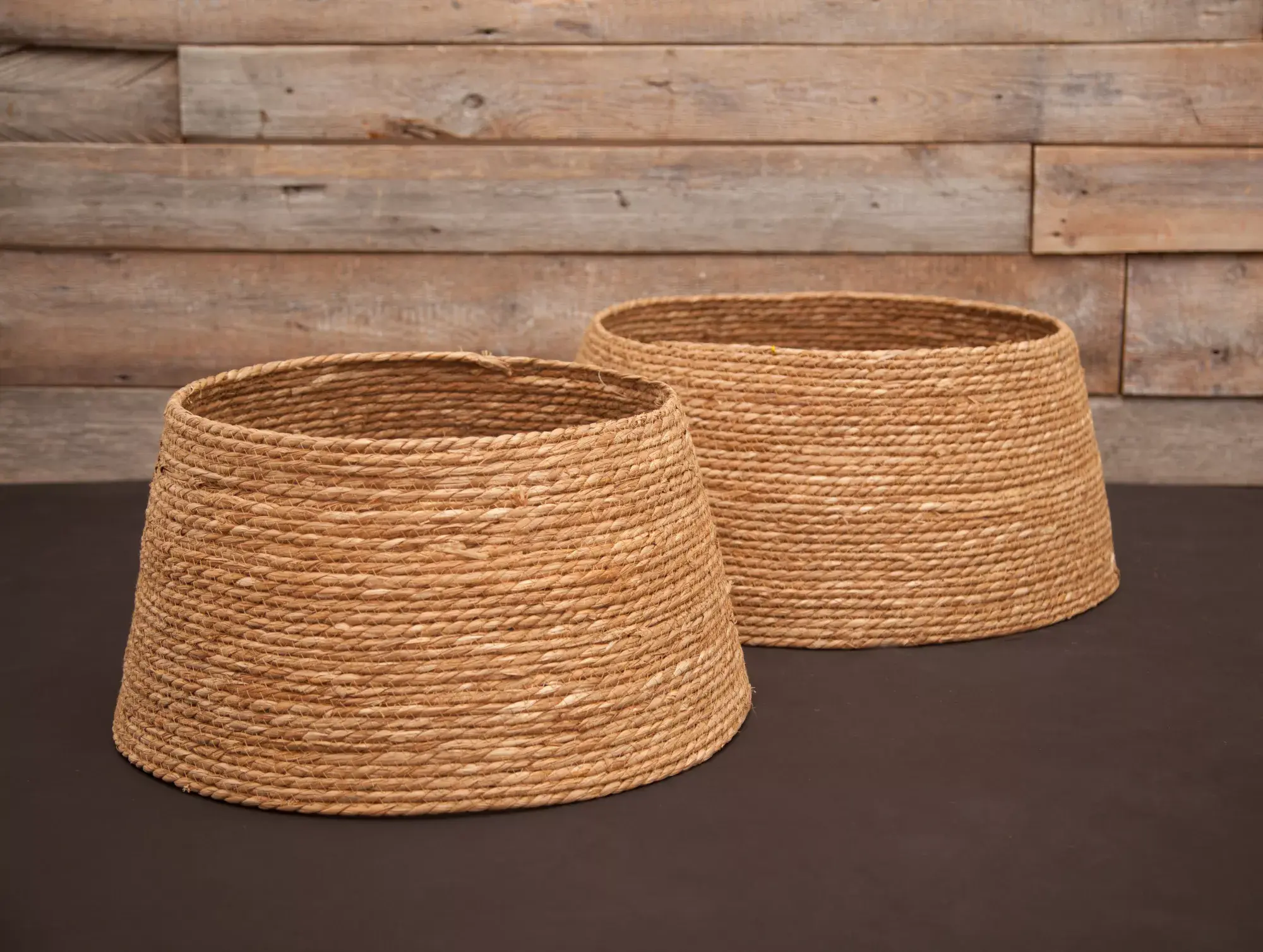 Корзины для декорирования основания елки - это самая модная европейская тенденция! Элегантная корзина, с помощью которой Вы можете оформить основание елки, придаст лесной красавице невероятно стильный, гармонично-завершенный вид. Учитывая, что джут имеет природное происхождение и обладает красивым древесным оттенком, изделия из него смотрятся очень экологично и хорошо впишутся практически в любой интерьер. Теперь Вам не придется задумываться, как спрятать от глаз скромную крестовину ели. В елке же, как и в человеке, все должно быть прекрасно - так что это изящное плетение придется как нельзя кстати.