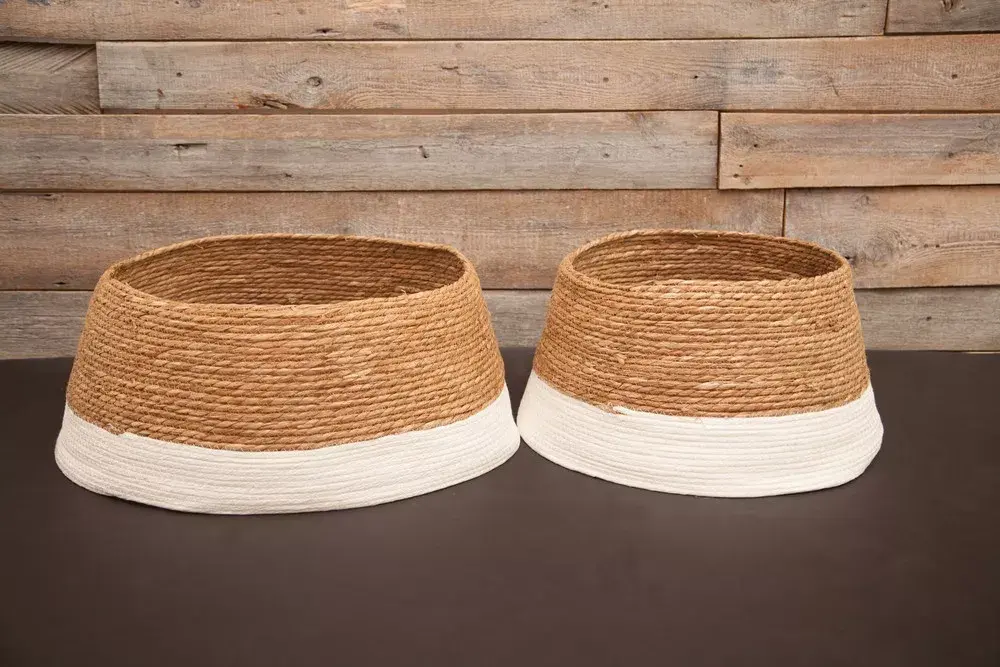 Корзины для декорирования основания елки - это самая модная европейская тенденция! Элегантная корзина, с помощью которой Вы можете оформить основание елки, придаст лесной красавице невероятно стильный, гармонично-завершенный вид. Учитывая, что джут имеет природное происхождение и обладает красивым древесным оттенком, изделия из него смотрятся очень экологично и хорошо впишутся практически в любой интерьер. Теперь Вам не придется задумываться, как спрятать от глаз скромную крестовину ели. В елке же, как и в человеке, все должно быть прекрасно - так что это изящное плетение придется как нельзя кстати.
