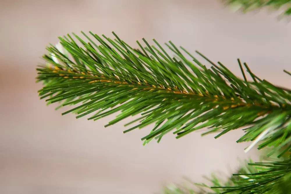 Хвоя создана из современнейшего экологически чистого материала ПВХ. Хвоя из него получается мягкой и приятной на ощупь, в тоже время иголочки смотрятся как живые. В основе веточек прочная проволока, поэтому можно на них вешать тяжелые стеклянные игрушки.