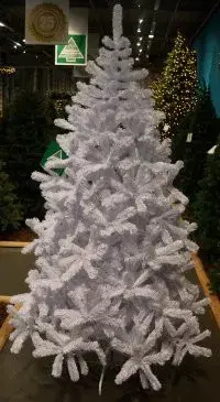 Елочки белого цвета очень удачно вписываются в любой интерьер, несмотря на непривычный цвет. Так сказать «фишка» этой сосны в том, что она переливается и блестит прямо как снег на свету. Повесьте на нее красные или синие шарики и от елочки не смогу оторвать взгляд Ваши гости.