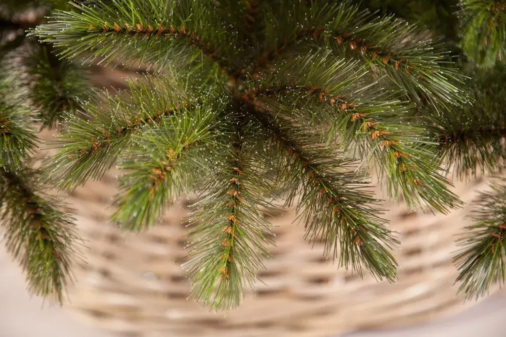 Шикарный и неповторимый вид изделию придает эффект инея на каждой иголочке. Веточки совсем не мнутся и из года в год останутся такими же красивыми и пушистыми.