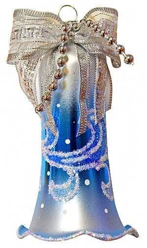 Елочная игрушка с поэтичным названием «Эхо» в виде колокольчика, украшенного изящным белоснежным морозным узором, чудо, как хороша! А добавление нежно-голубого цвета придает ей особый новогодний шик. И, наконец, завершающий аккорд – элегантный белоснежный бант. Какое эхо вы хотите услышать? Это зависит от вас. Ясно одно: оно будет красивым и мелодичным.