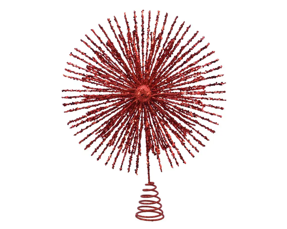 Вот она елка, стоит красивая и нарядная! Однако чего-то все же не хватает. Конечно, верхушки – декоративного элемента, завершающего весь праздничный образ хвойной красавицы. Верхушки от Kaemingk "Фонтан" можно назвать настоящими произведениями искусства. Они словно взрыв сверхновой звезды, словно всплеск фейерверка в небе, словно сияющее солнце. Кажется, что самая яркая звезда спустилась с небес, чтобы увенчать ваше новогоднее дерево. Словом, дизайн у этих верхушек самый необычный и неординарный. Модель представлена в нескольких цветах, чтобы подобрать идеальное решение именно для вашего дерева – натурального или искусственного. Насыщенный красный, золотисто-бронзовый, снежно-белый и серебряный – они красивы и ярки все, очень сложно сделать выбор!