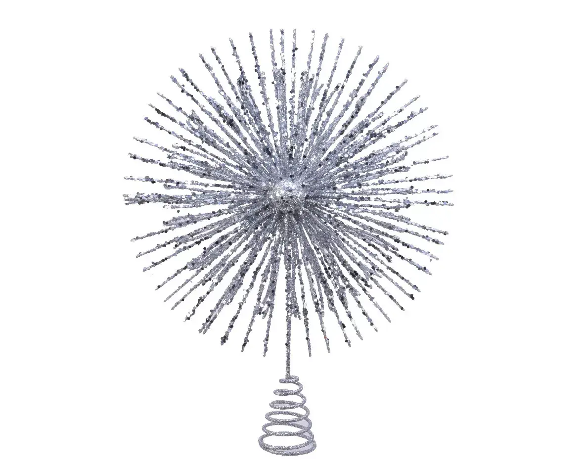 Вот она елка, стоит красивая и нарядная! Однако чего-то все же не хватает. Конечно, верхушки – декоративного элемента, завершающего весь праздничный образ хвойной красавицы. Верхушки от Kaemingk "Фонтан" можно назвать настоящими произведениями искусства. Они словно взрыв сверхновой звезды, словно всплеск фейерверка в небе, словно сияющее солнце. Кажется, что самая яркая звезда спустилась с небес, чтобы увенчать ваше новогоднее дерево. Словом, дизайн у этих верхушек самый необычный и неординарный. Модель представлена в нескольких цветах, чтобы подобрать идеальное решение именно для вашего дерева – натурального или искусственного. Насыщенный красный, золотисто-бронзовый, снежно-белый и серебряный – они красивы и ярки все, очень сложно сделать выбор!