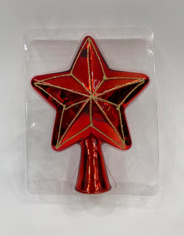Изысканная елочная макушка от Christmas DeLuxe станет настоящим украшением вашей праздничной елки. Эта великолепная звезда сочетает в себе благородство рубинового красного цвета и роскошь золотого декора, создавая неповторимую атмосферу праздника. Драгоценное сияние достигается благодаря виртуозному сочетанию рубиновых лучей и изящной золотой отделки. Каждый луч звезды украшен тончайшими золотыми узорами, которые создают завораживающую игру света и подчеркивают глубину рубинового цвета. Компактные размеры 18 см делают эту звезду идеальным выбором для елок небольшого и среднего размера. При этом она не теряется среди других украшений, благодаря своему выразительному дизайну и яркому исполнению. Мастерское исполнение гарантирует долговечность и сохранение первозданного блеска на протяжении многих лет. Высококачественное стекло делает эту звезду настоящим произведением искусства.