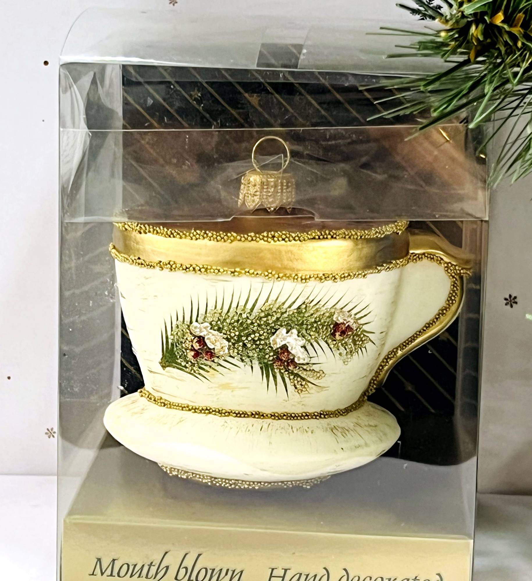 Любители ароматного чая холодным зимним вечером не пройдут мимо формовой игрушки «Чашка с веточкой». Подарите винтажное елочное украшение от известного бренда Irena хорошему другу или родственнику, имеющему такую слабость, и вы будете вознаграждены его взглядом, полным восторга и благодарности.