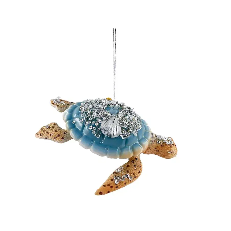 Милое елочное украшение в виде любознательной черепашки станет оригинальным дополнением к вашему новогоднему декору. Выполненная в нежно-голубом цвете, эта пластичная игрушка добавит нотку морской свежести в праздничную атмосферу.