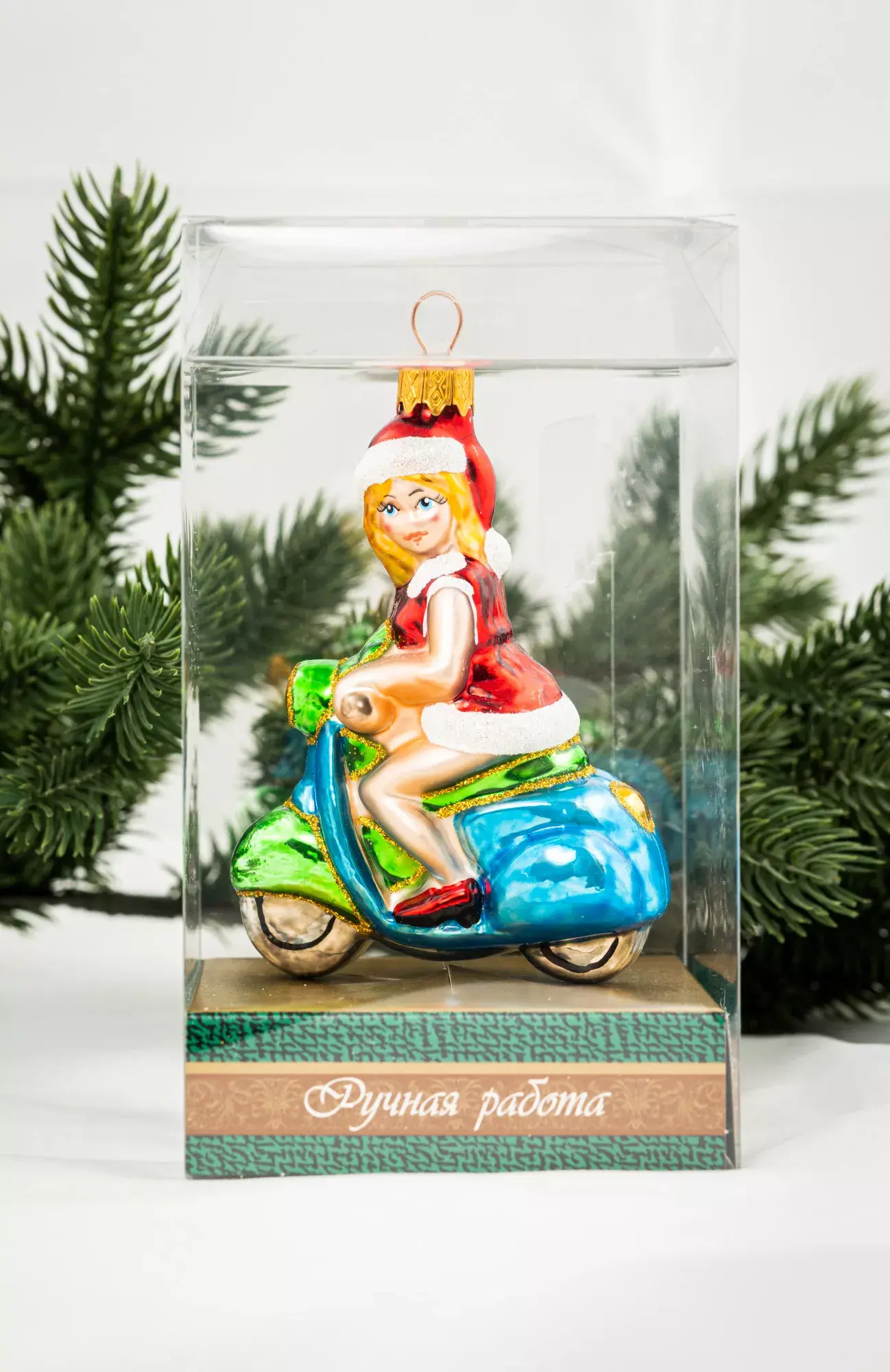 Каждая елочная игрушка находится в индивидуальной упаковке, что позволяет сохранить ее на долгие годы. Изделие будет отличным сувениром на сказочные зимние праздники.