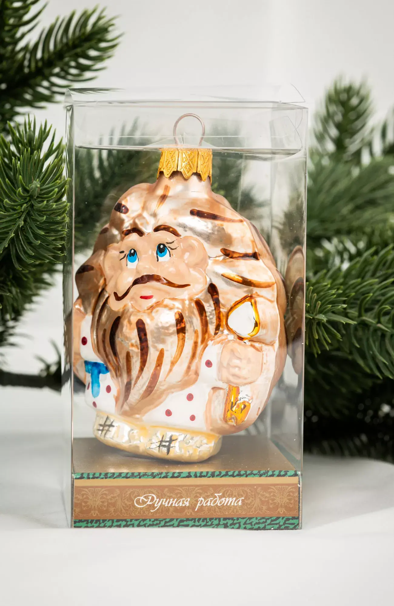 Каждая елочная игрушка находится в индивидуальной упаковке, что позволяет сохранить ее на долгие годы. Изделие будет отличным сувениром на сказочные зимние праздники.