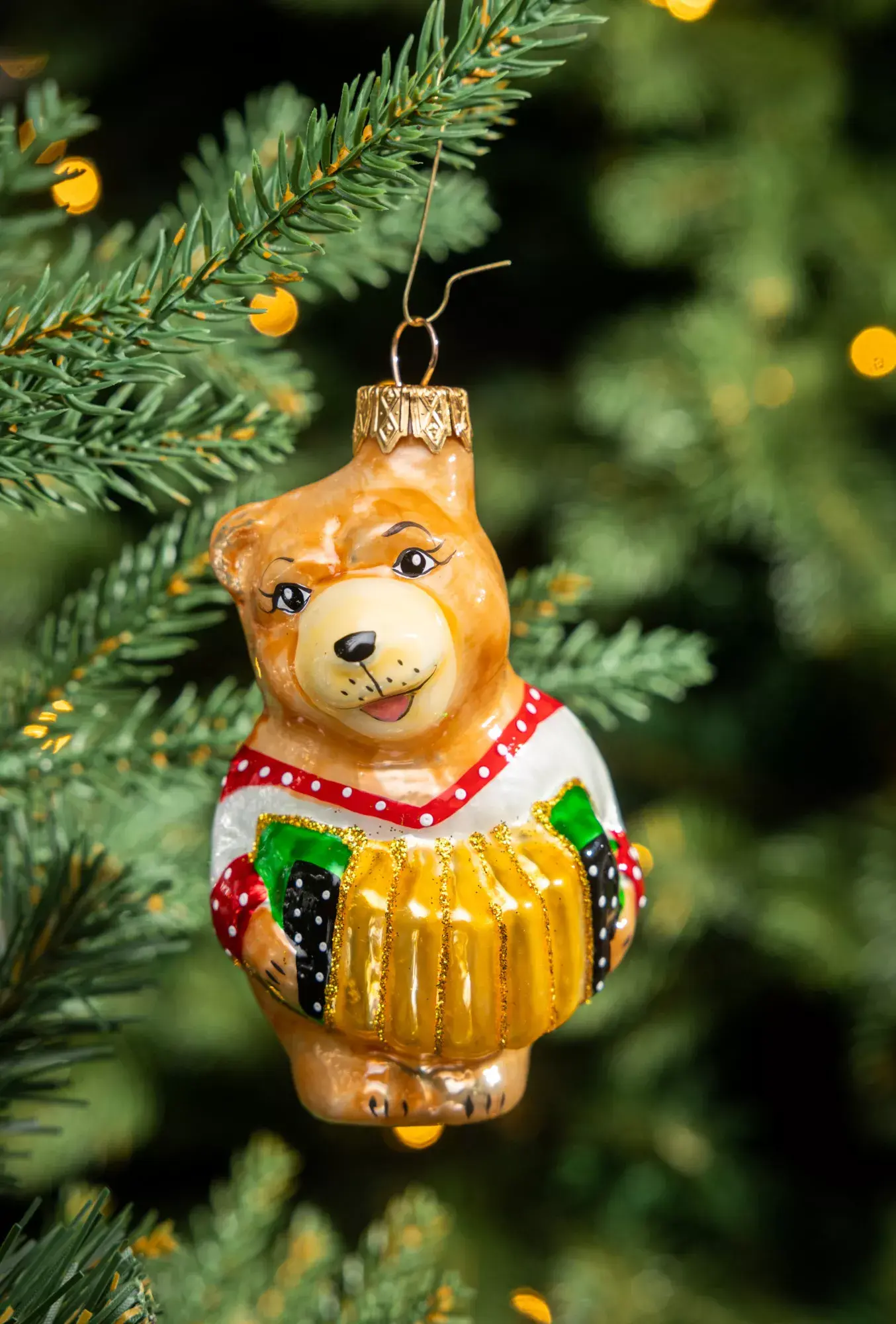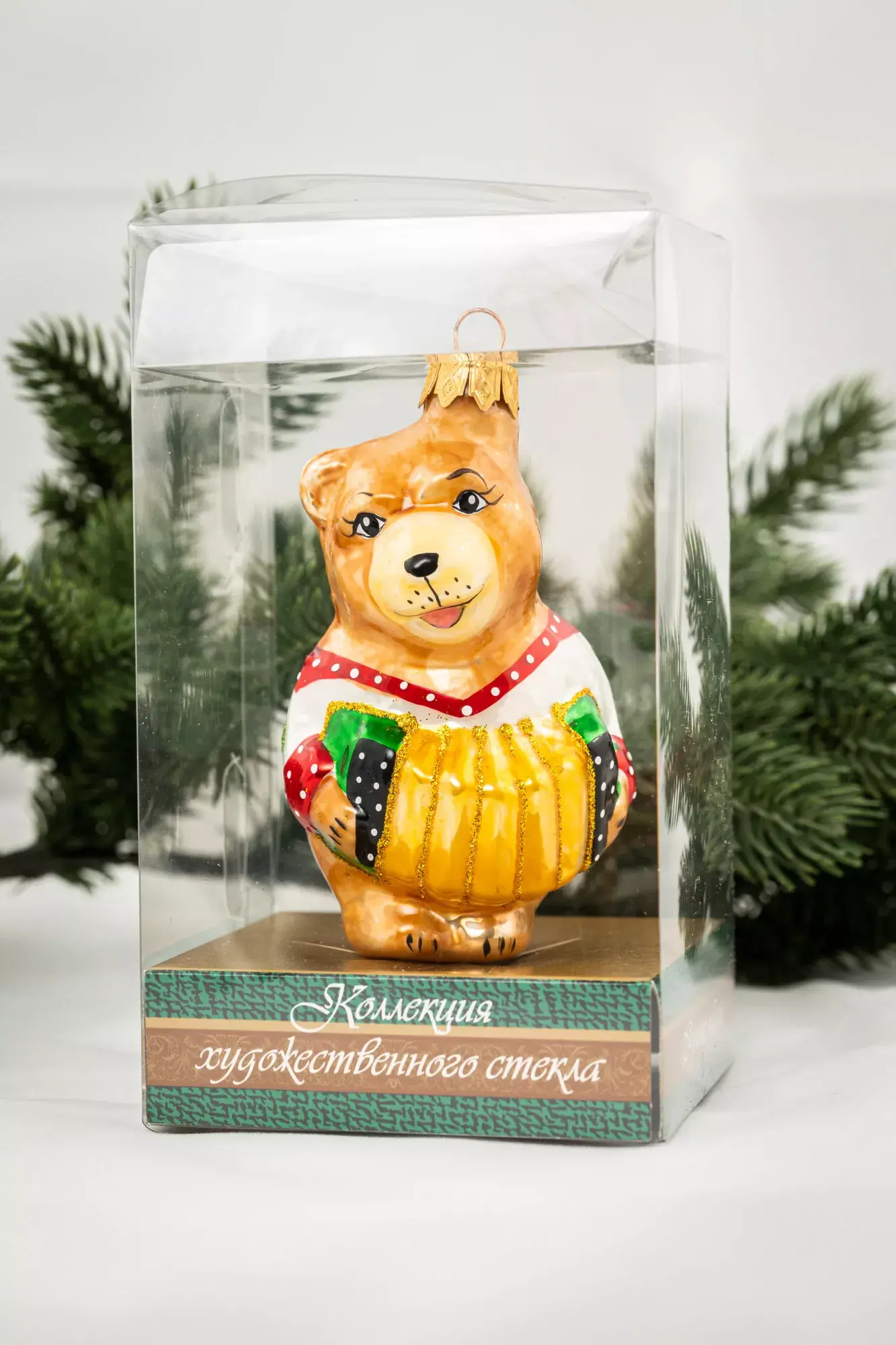 Медведь - это именно то животное, с которым ассоциируется русская душа. А в этой формовой игрушке объединены два символа России - медведь, да еще с гармошкой. Очень патриотичное украшение, которое будет актуальным в любом новогоднем убранстве.