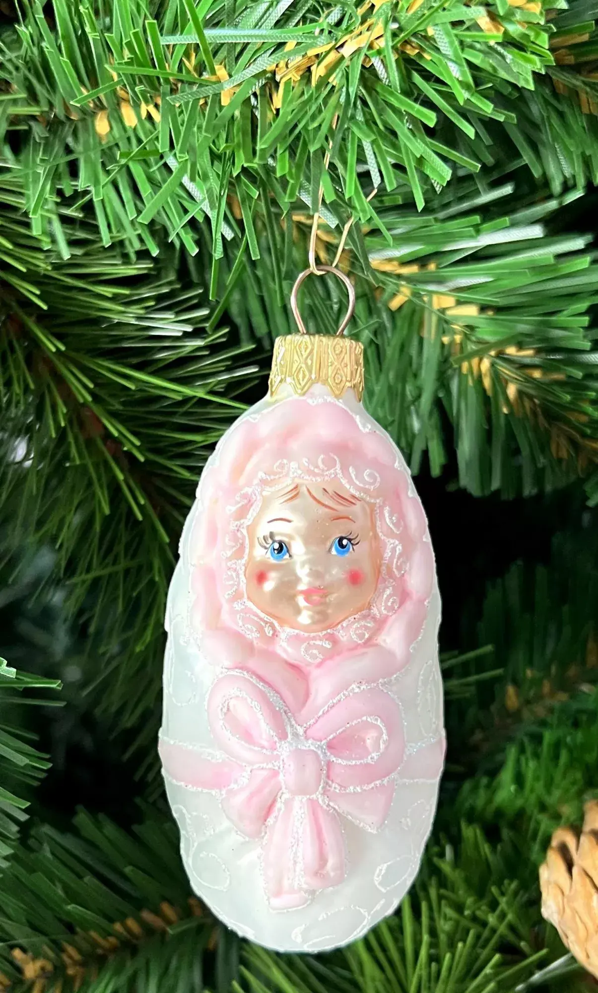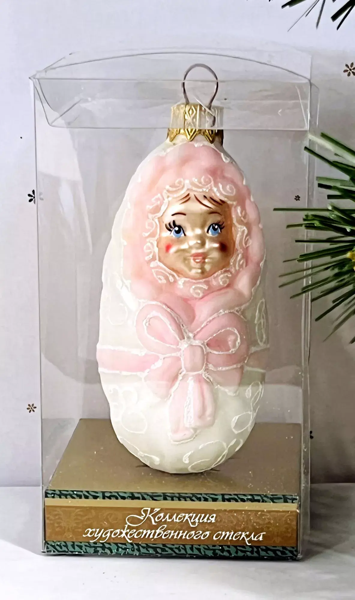 Если у ваших родных или друзей родилась маленькая принцесса, они будут рады получить в подарок елочную игрушку «Младенец». Одеяльце, отделанное кружевом, вызывает восхищение, а личико малышки – умиление. Изделие рекомендуется обладателям елочки белого цвета. Удивительно нежное сочетание!