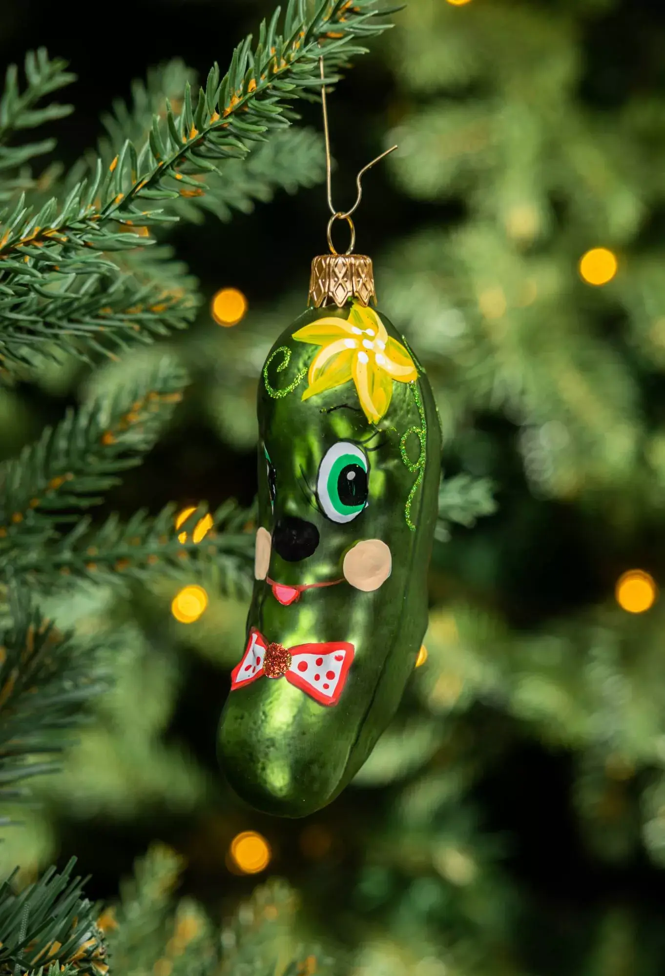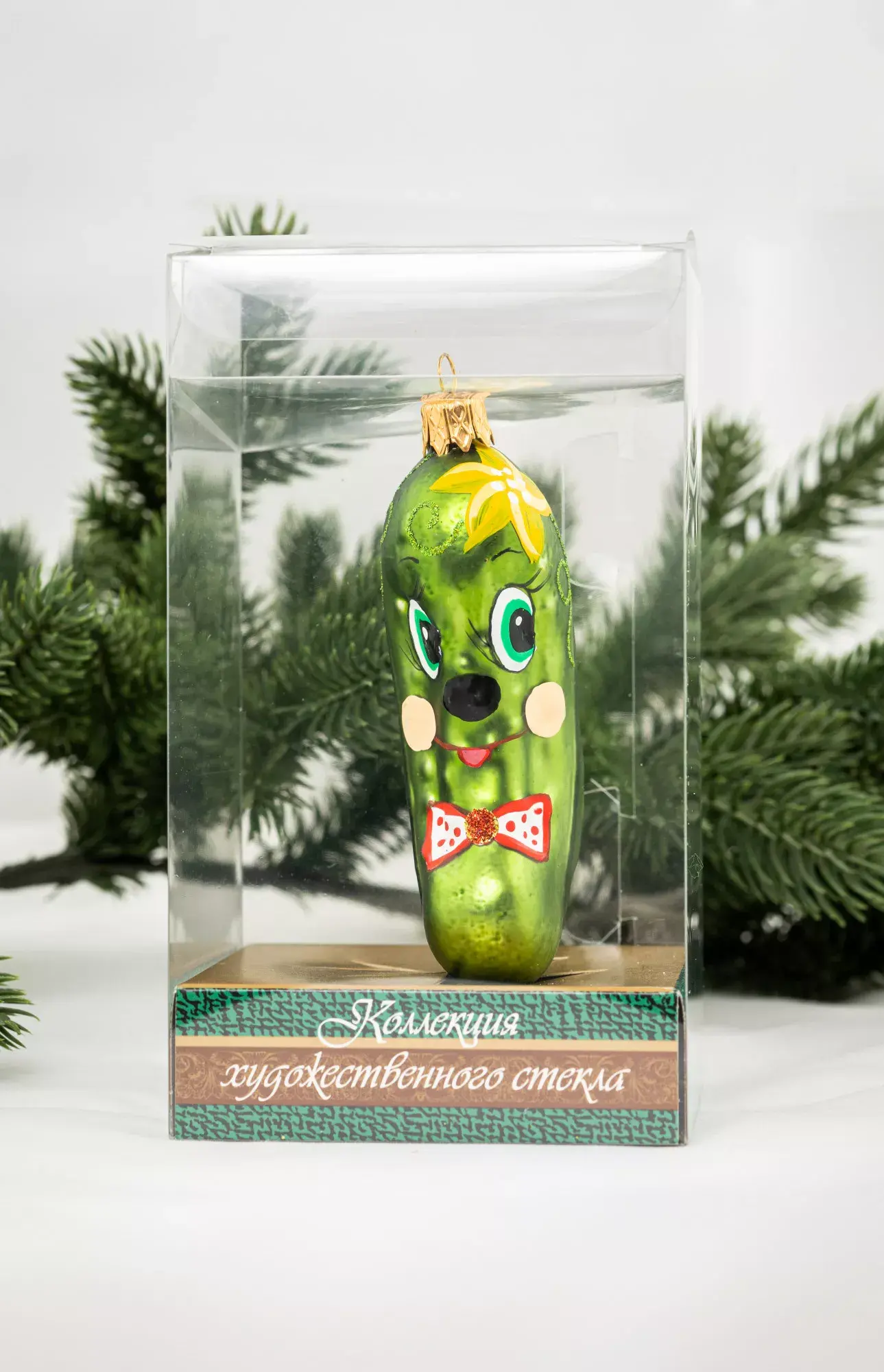 Атмосфера советского мультфильма пропитана добротой. Формовые игрушки, сделанные по их мотивам, так же отличаются особой душевностью. Огуречик яркий, зеленый с пупырышками и милыми щечками, хвостик которого венчает лепестки цветка как челка. Особый шик его облику добавляет галстук бабочка - настоящий джентельмен огородного царства украсит Вашу новогоднююю красавицу.
