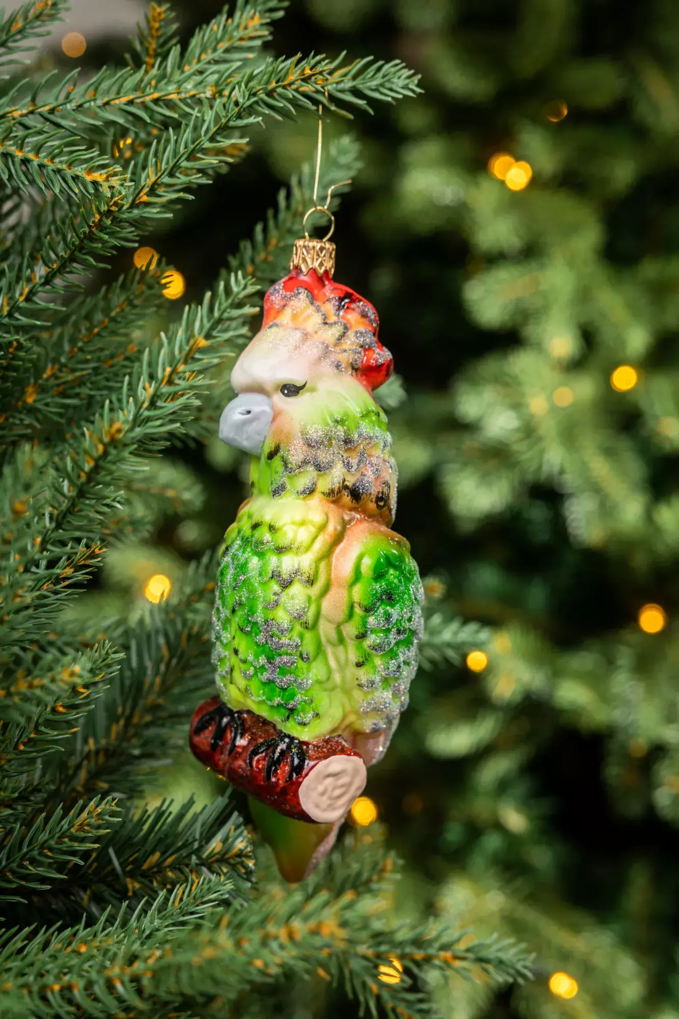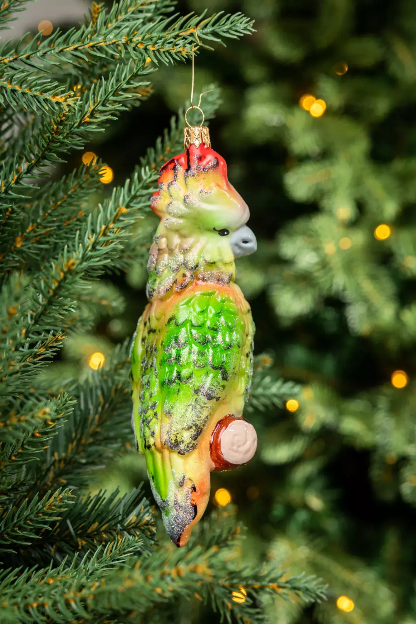 Для любителей эпатажа и экзотики просто необходимо добавить в свою коллекцию это колоритное украшение в виде фигурки попугая. Изделие достаточно крупное, может послужить отправной точкой всей концепции оформления или стать эффектным акцентом. Нежные оттенки голубого переходящие в насыщенный бирюзовый цвет навеевают прохладу морского бриза. Ель, оформленная в африканском стиле, не оставит никого равнодушным и уж точно запомнится на долго.