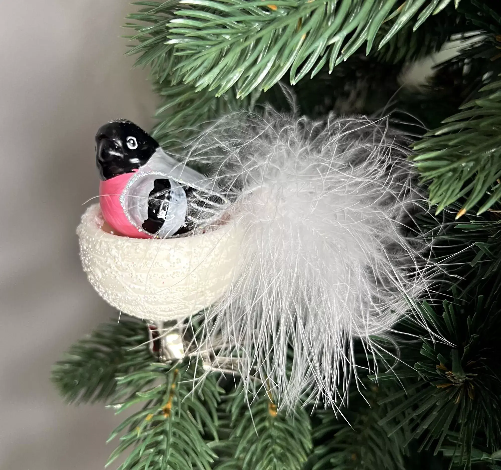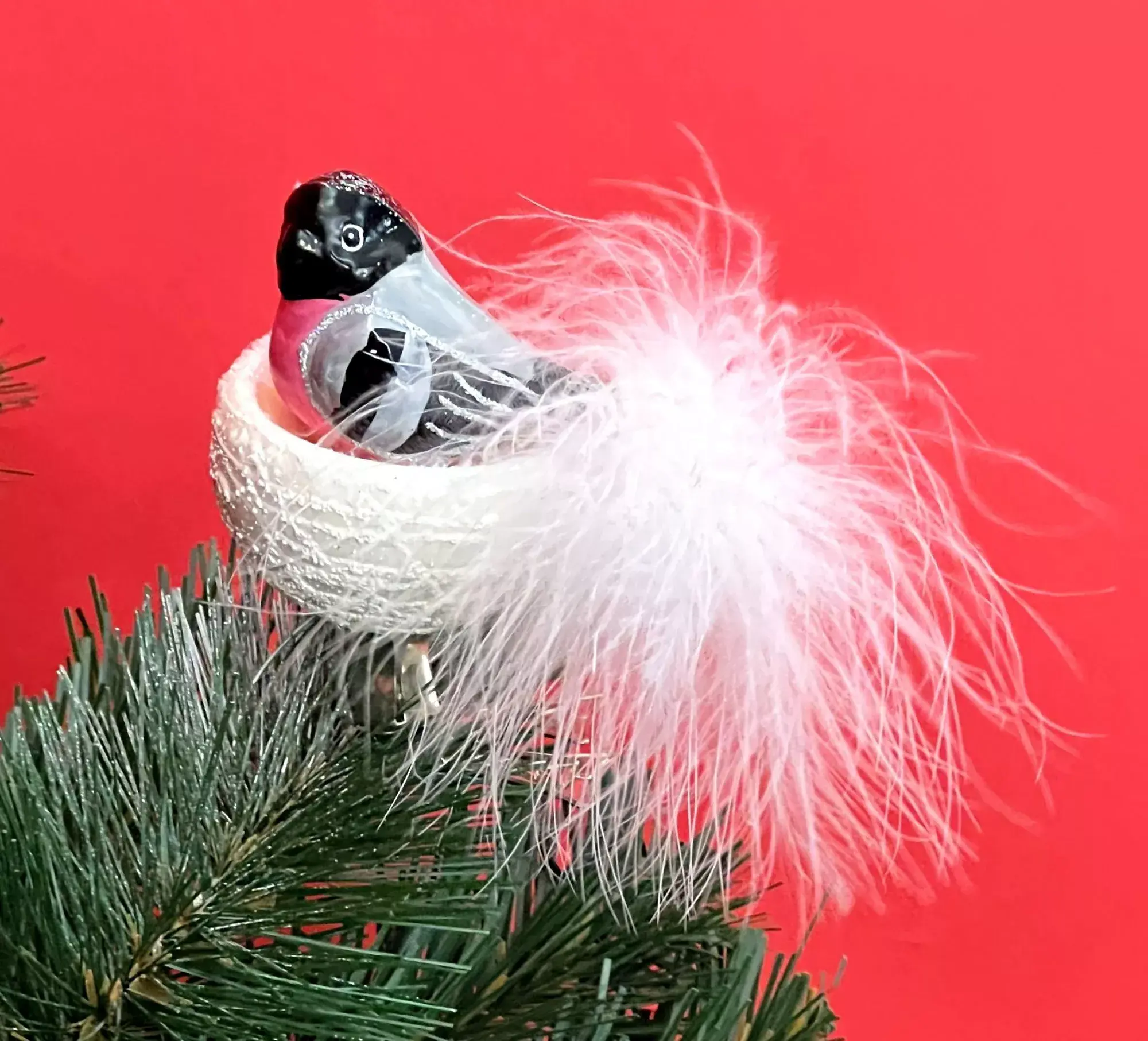 Снегирь – один из любимых героев новогодних открыток и других композиций. В нашем каталоге вы найдете елочную игрушку «Птичка в гнезде» от бренда Irena. Снегирь в белоснежном гнезде, украшенном воздушным перышком, обращает на себя внимание оригинальным дизайном и эффектно смотрится на елке любого цвета.