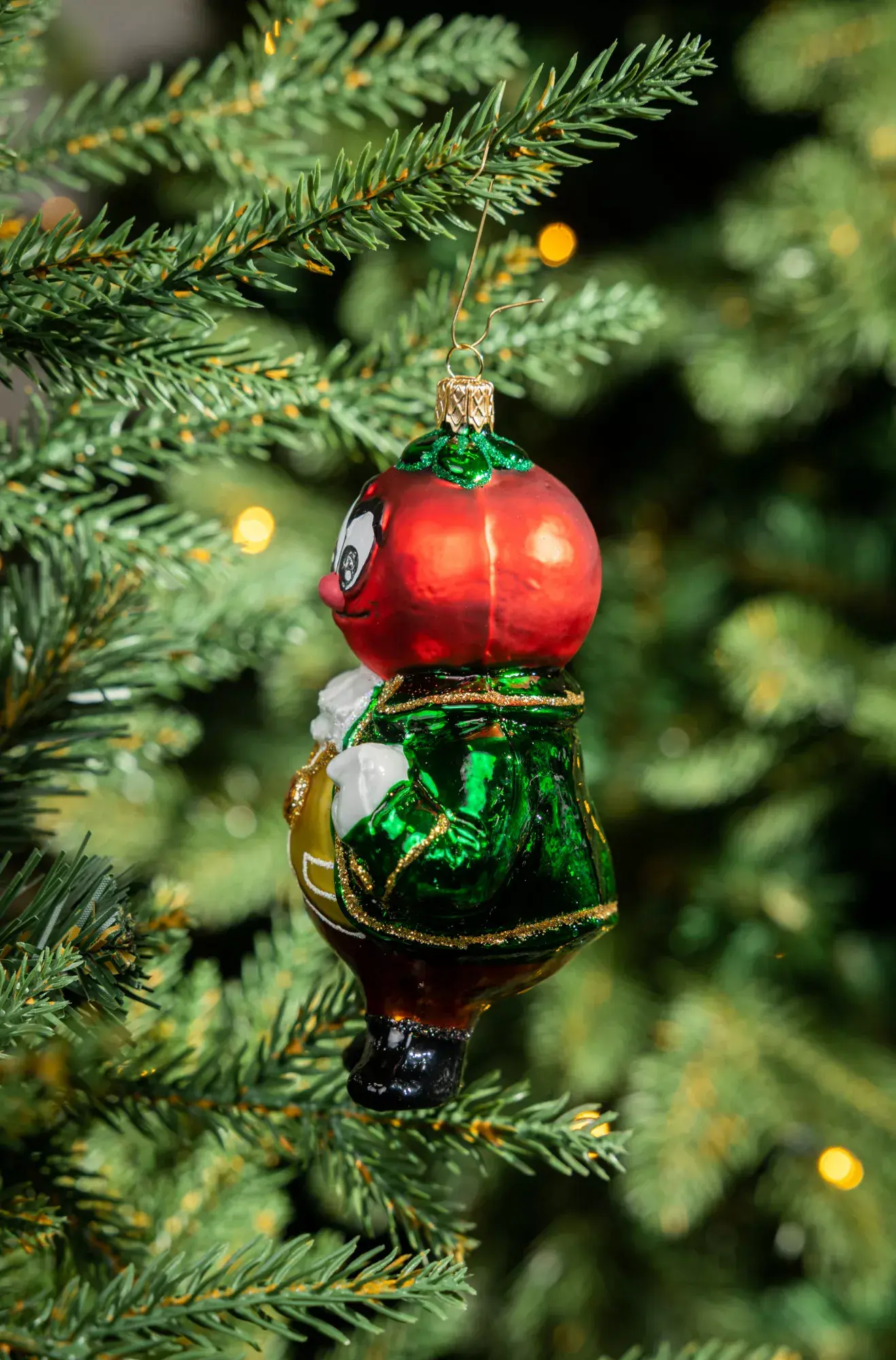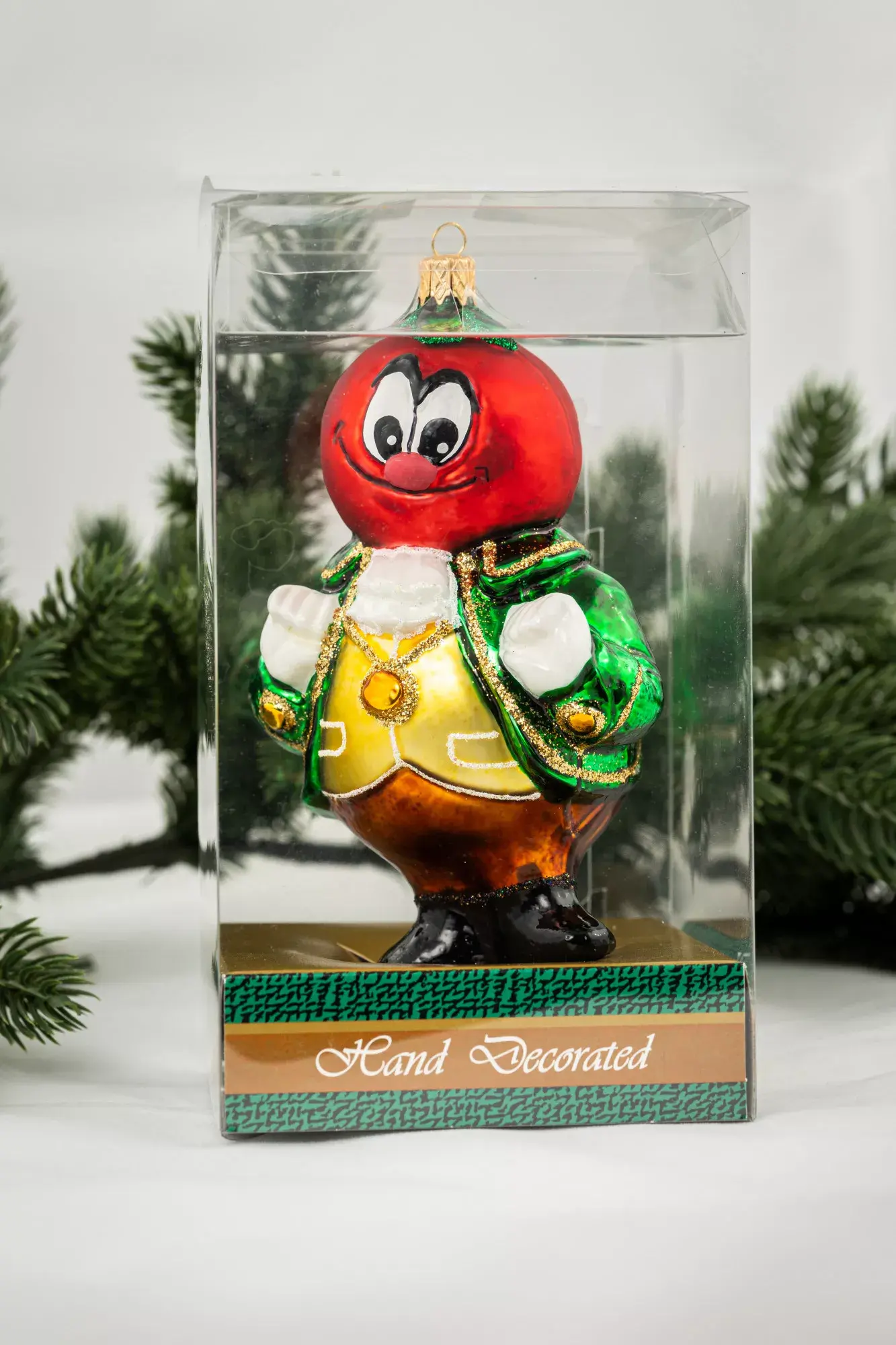 Новый год это время чудес и теплых воспоминаний! Когда вы украшаете елку, каждая игрушка - это как портал в ваше беззаботное детство. Формовая игрушка Сеньор Помидор яркая, с детально прорисованными элементами, передает игривое настроение всеми любимого советского мультфильма о приключениях Чиполлино. Великолепное качество стекла и красок делает эту игрушку произведением искусства.