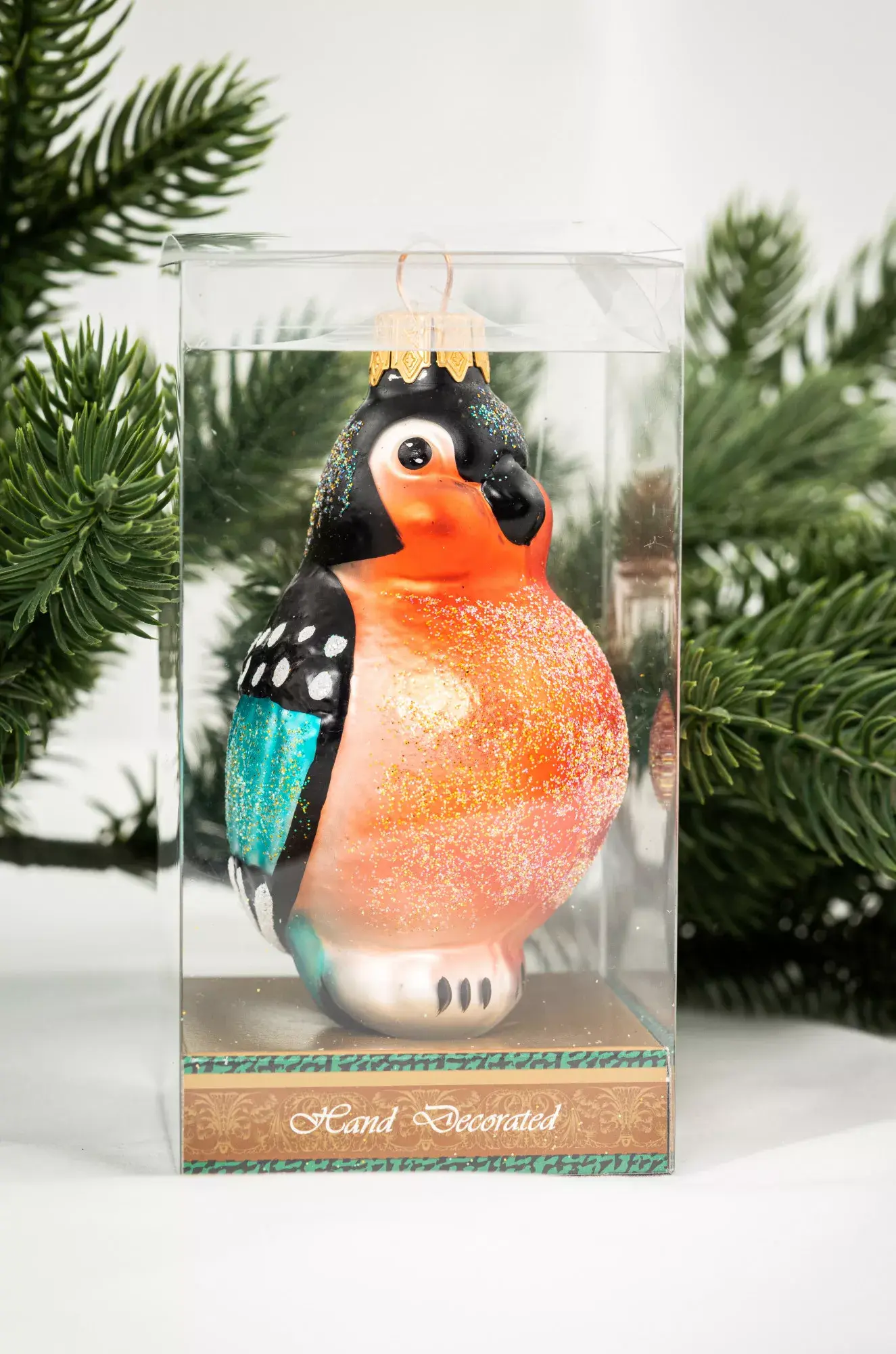 Снегирь, наравне с первыми снежинками, извещает нас о наступлении зимы, а вместе с ней и о предстоящих прекрасных праздниках. Яркое сочетание цветов оперения этой птички разбавляет однотонные зимние пейзажи, да и на елке это украшение будет непременно привлекать внимание. Украшение из стекла с филигранной прорисовкой деталей дарит ощущение, что птичка вот-вот вспорхнёт с вашей лесной красавицы и подарит вам настоящее новогоднее чудо.