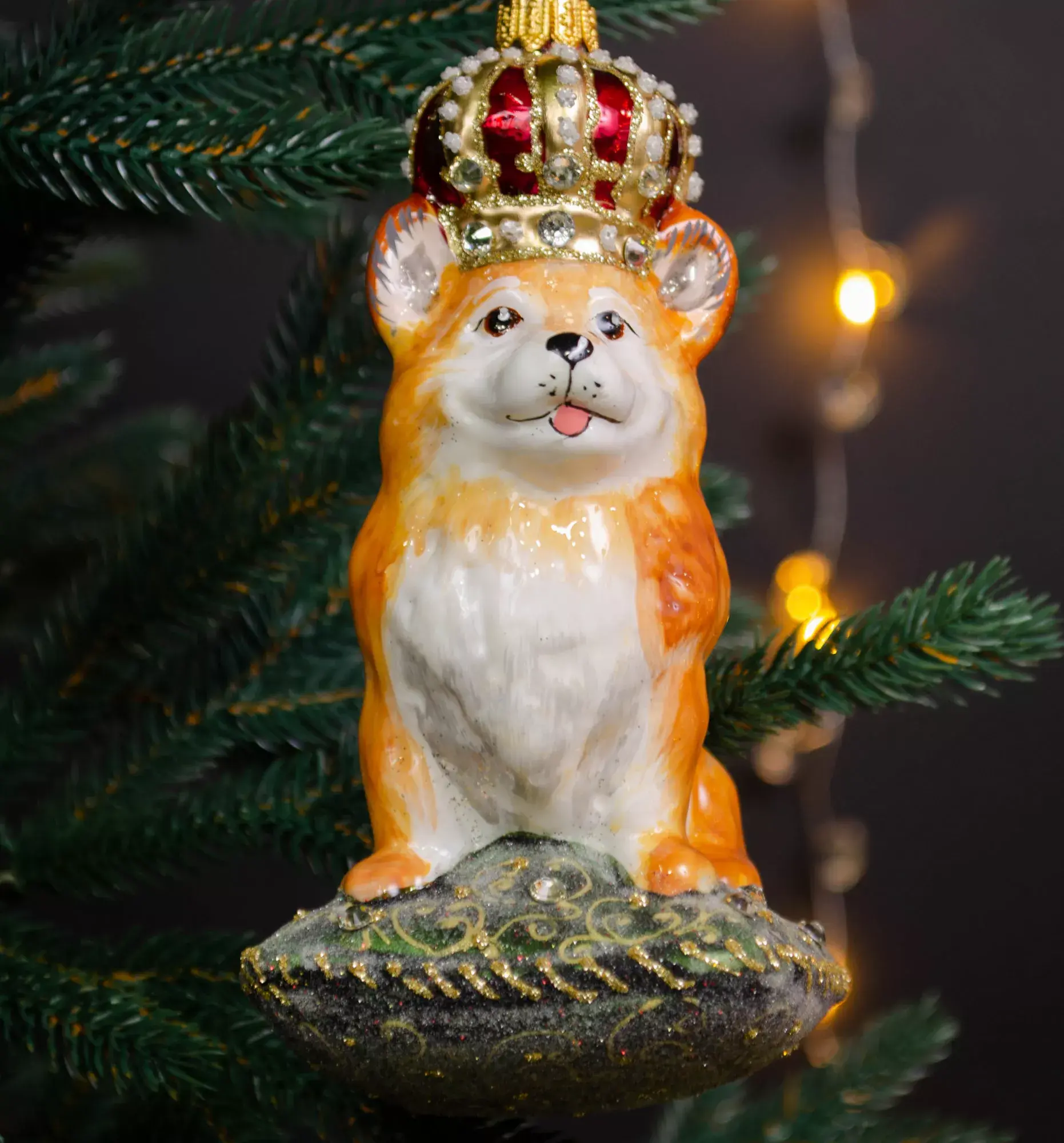 Симпатичный рыжий песик с белой грудкой, в роскошном головном уборе, с необычным именем Корги вряд ли оставит кого-нибудь равнодушным. Собака – друг человека, а присутствие друзей в новогоднюю ночь очень важно. Приобретите елочное украшение от Irena «Собака Корги», и вы можете быть уверены – в новом году вас будут окружать только самые верные и преданные товарищи!