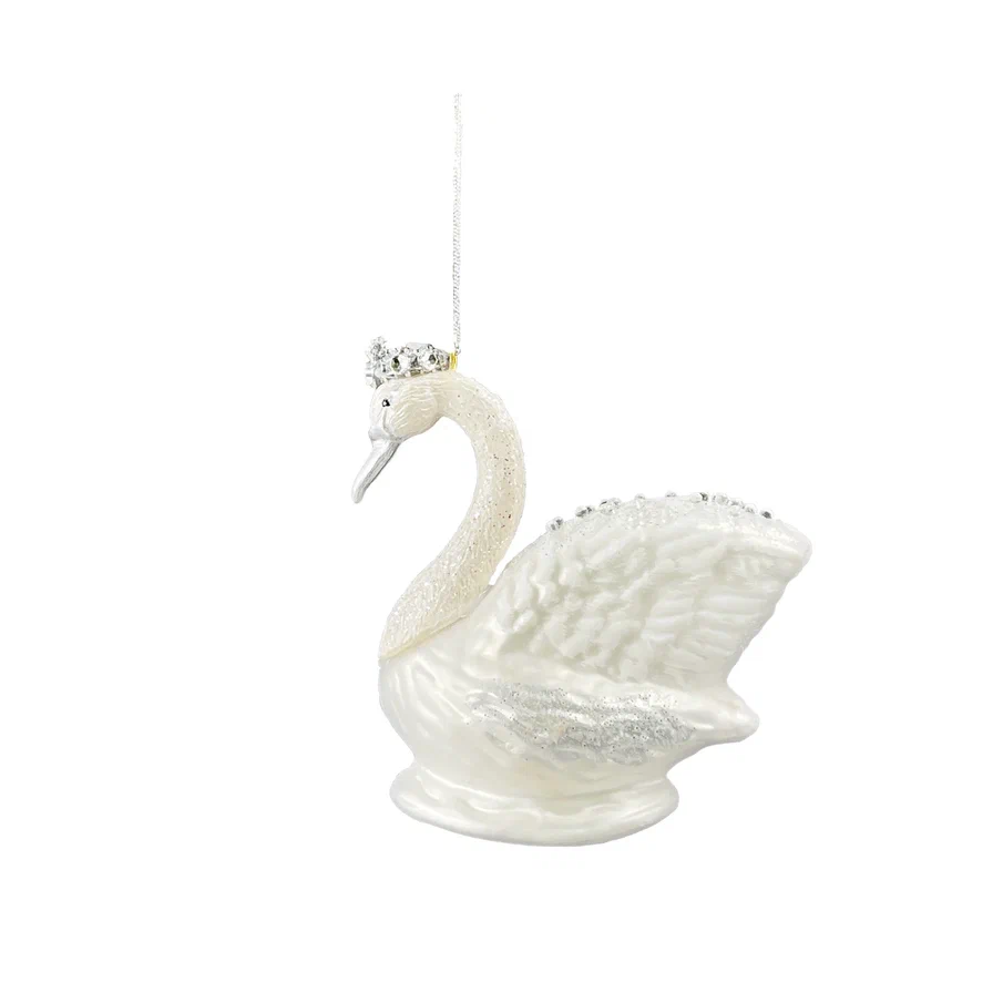 Изысканная елочная игрушка в виде грациозной лебедушки станет настоящим украшением вашей праздничной елки. Выполненная из качественного стекла, она отличается плавными линиями и изящной формой, напоминающей гордую осанку царственной птицы.