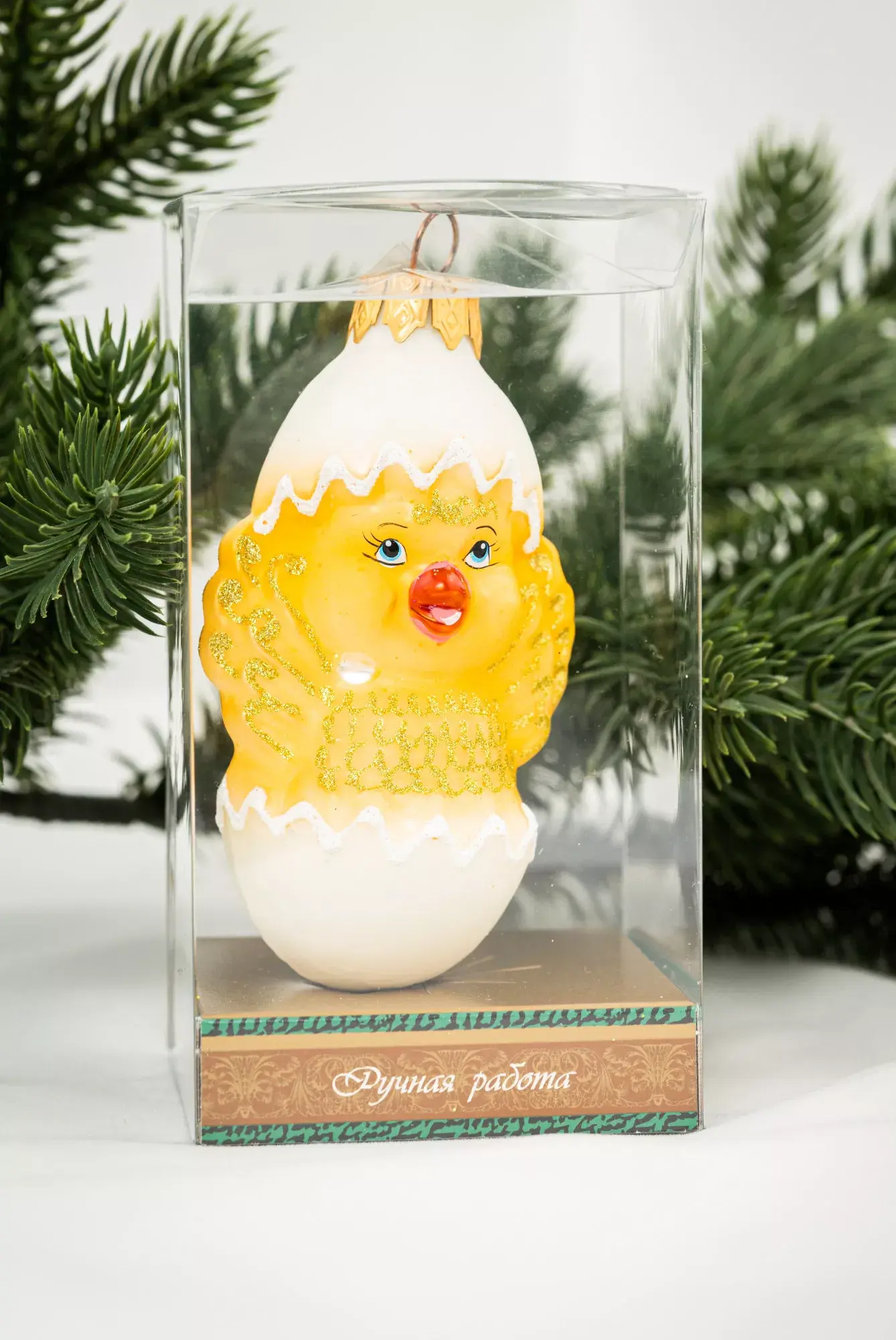Каждая елочная игрушка находится в индивидуальной упаковке, что позволяет сохранить ее на долгие годы. Изделие будет отличным сувениром на сказочные зимние праздники.