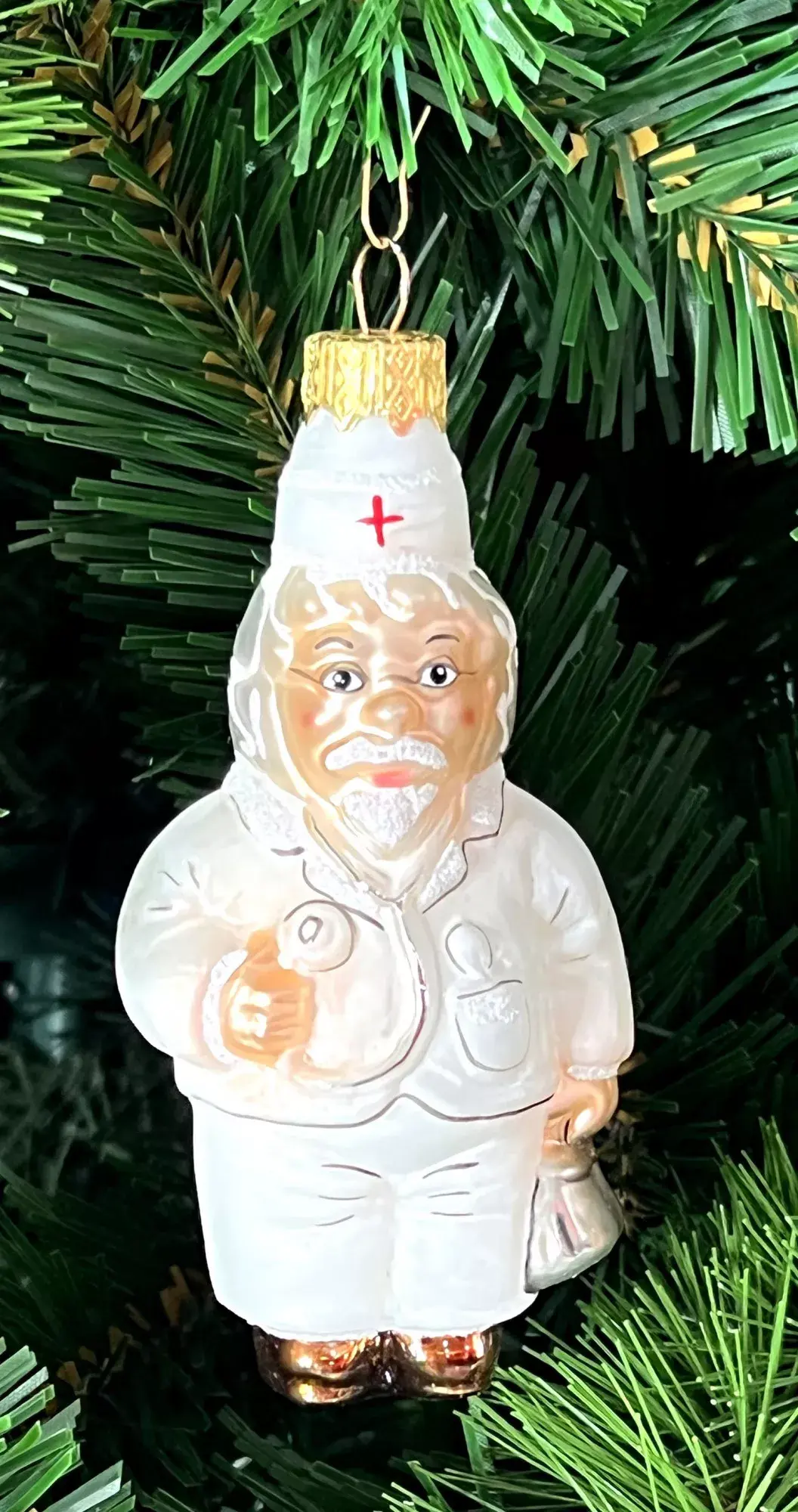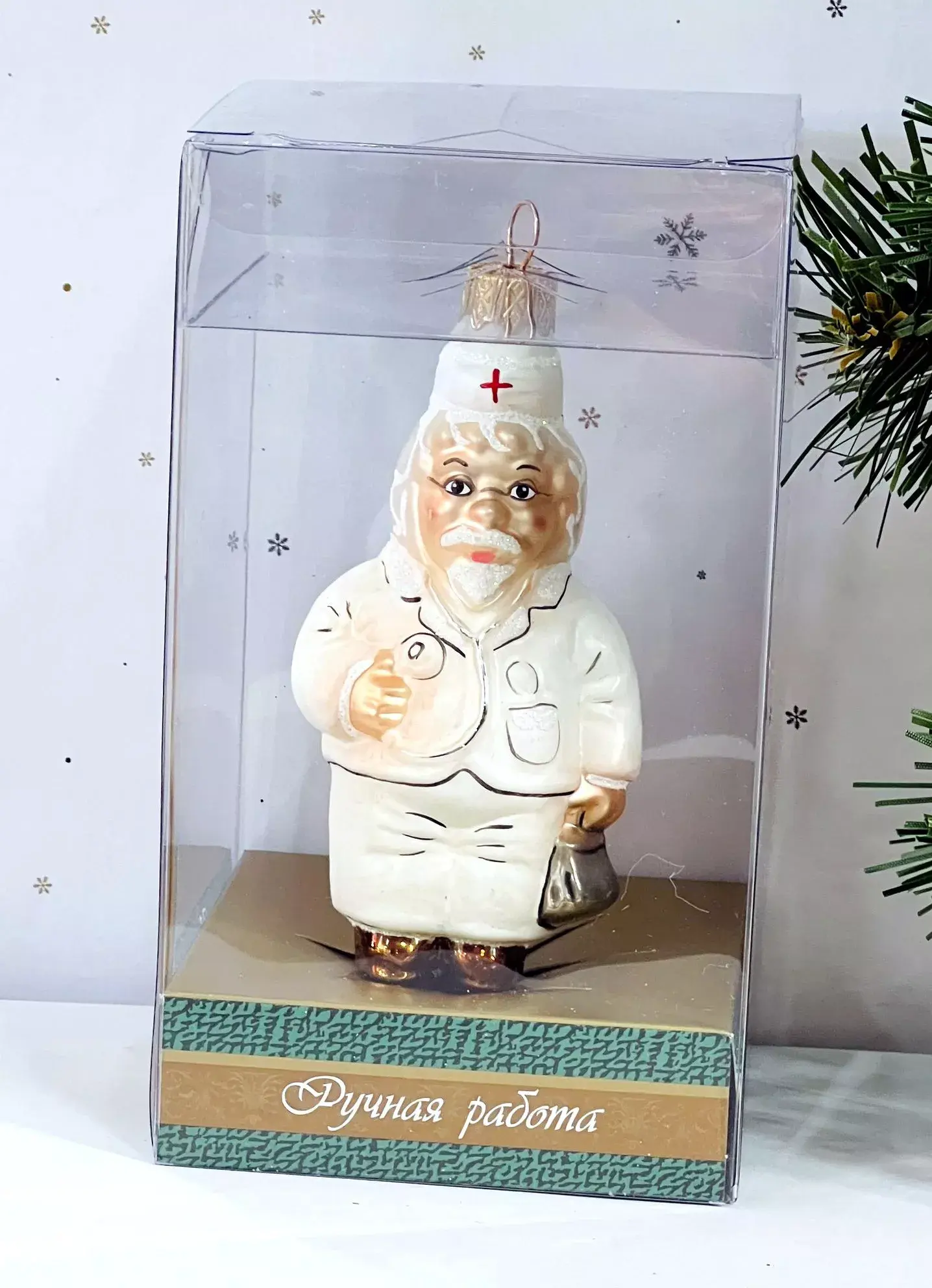 Не знаете, что подарить на Новый год родственнику или другу, работающему врачом? Зато фирма «Любомир» знает! Подарите елочное украшение «Врач». Вы не прогадаете – игрушка подойдет к елке любого цвета. А адресату подарка будет приятно, что вы сделали акцент на его нелегкой и очень благородной профессии