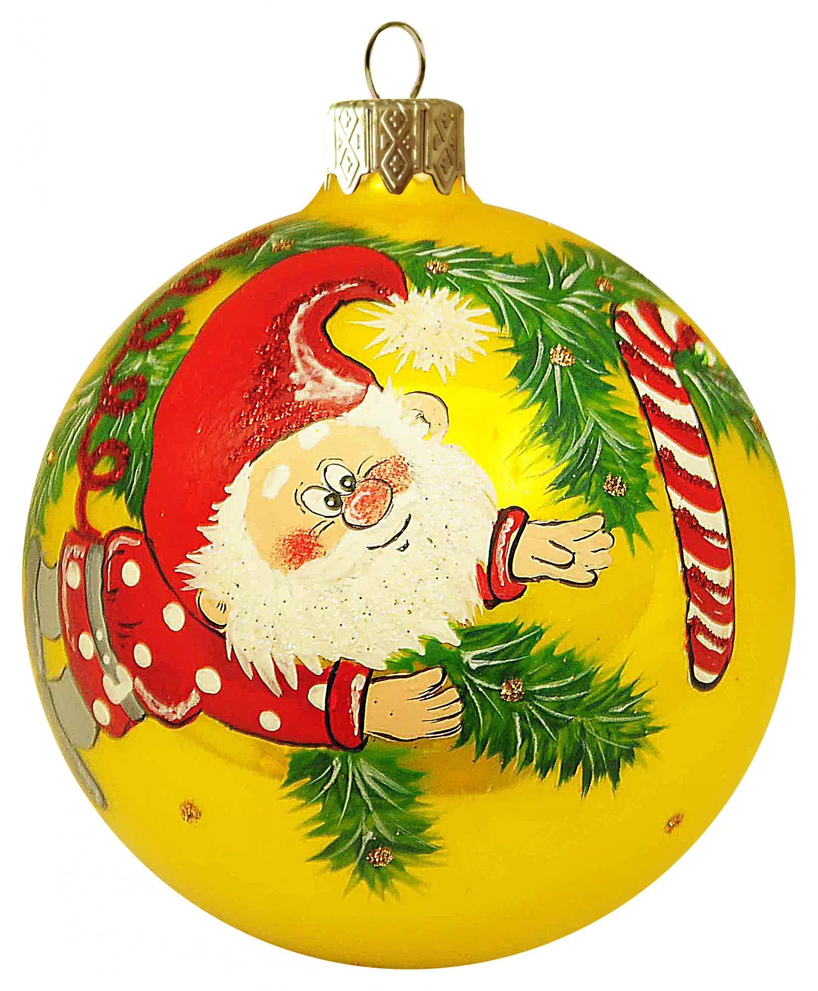 Гном, как известно, охраняет сокровища. А гномик, поселившийся в новогоднюю ночь на вашей елке, будет охранять ваше счастье и благополучие. Речь идет о елочном украшении, шаре «Гномик на елочке ». Эта новогодняя игрушка привлекает внимание насыщенными красками и оригинальным дизайном. Забавный бородатый гном на ярко-желтом фоне придаст празднику европейский колорит, а гости будут в восторге.