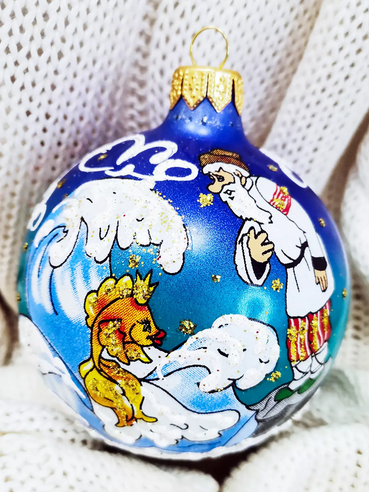 Если вы ждете от Нового года сказки и исполнения всех своих сокровенных желаний, то приобретите новогодний шар «Золотая рыбка». Уж три желания она точно исполнит, что, согласитесь, немало! На шаре изображена красочная иллюстрация из знаменитой сказки Пушкина. Но даже если вы не относитесь к любителям творчества Александра Сергеевича, этот дивный аксессуар, несомненно, придется вам по душе.