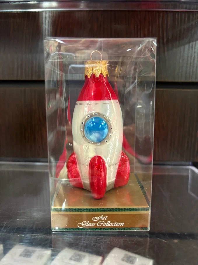 Формовая игрушка «Ракета» от бренда Витус (артикул А362) — это стильное и яркое украшение для новогодней ёлки. Она выполнена из стекла и имеет форму ракеты с красными и белыми элементами, а также синим окном, что придаёт ей реалистичный и праздничный вид. Высота игрушки составляет 10 см, что делает её удобной для размещения на ёлке.