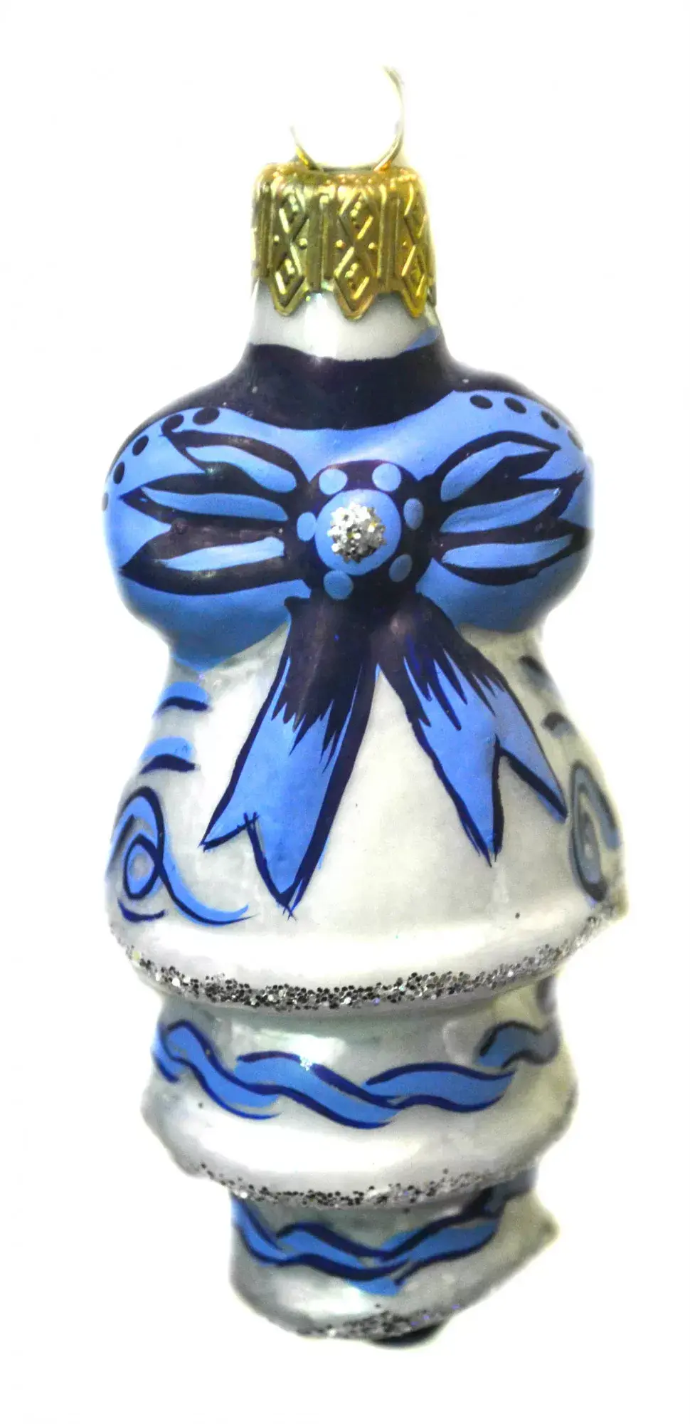 Хрустальный звон колокольчика сообщает о приближении самого доброго праздника – Нового года. Игрушка в виде банта в бело-голубом цвете будет яркой изюминкой на Вашей лесной царице. Украшения серии «Русские узоры» прекрасно подойдут для сувенира из России и украшения елочки в народном тиле. В коллекцию «Русские узоры» входят: «Шишка» (арт. ФУ-2-90/Р), «Колокольчик с бантом» (арт. ФУ-263/Р), "Часы Тумба" (арт.ФУ-102/2/Р) и "Денежный мешок" (арт. ФУ-230/Р).