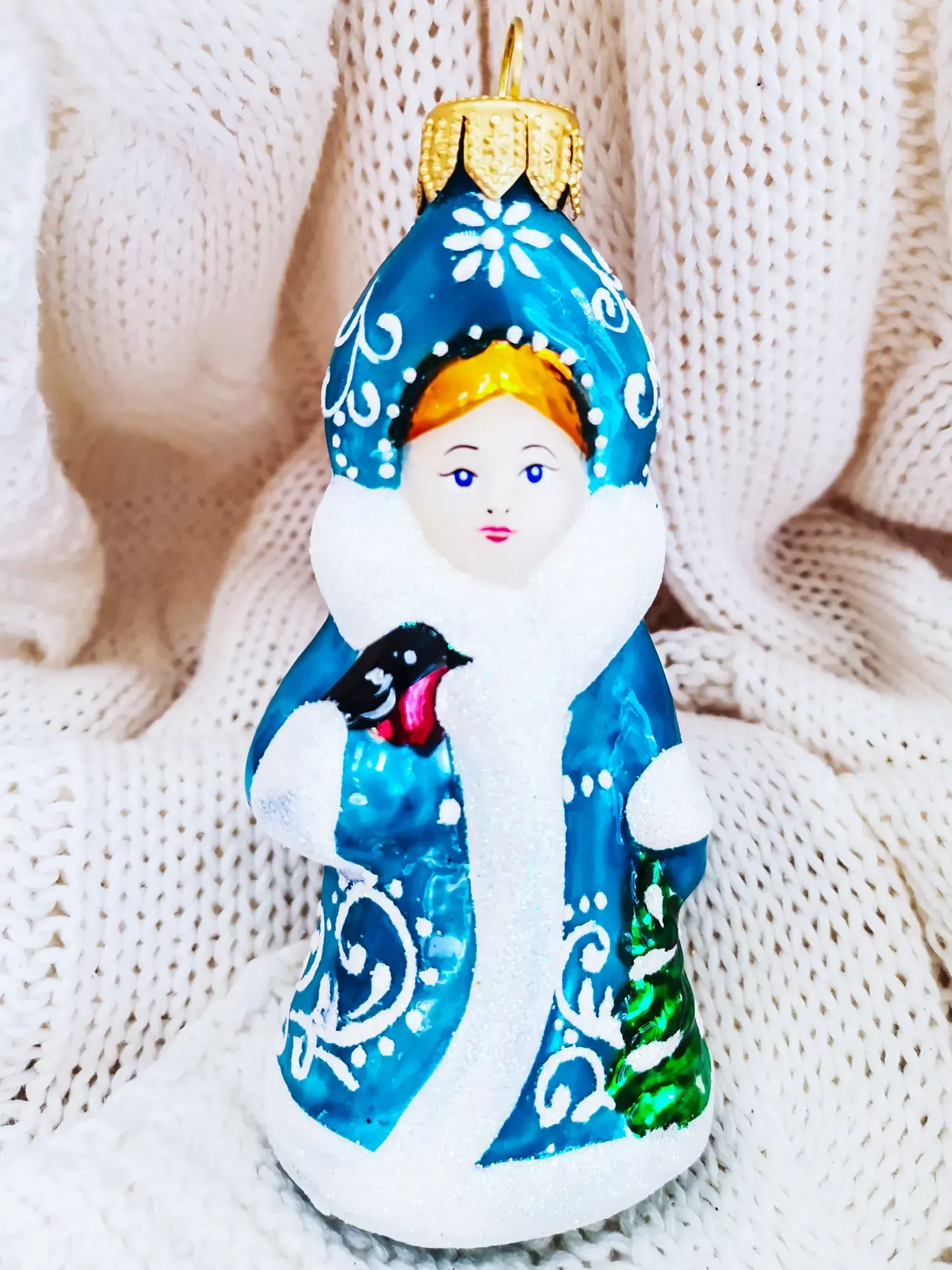 Перед «Снегурочкой» из нашего каталога просто невозможно устоять! Посмотрите, как она прекрасна в шубке небесно-голубого цвета с белой оторочкой. А эти ярко-золотистые волосы на фоне кокошника в тон одежке? Внучка Дела Мороза – само очарование! Елочное украшение подчеркнет стать зеленой ели. Хотите новогоднего креатива? Тогда приобретите белую елку и дополните ее «Снегурочкой»!