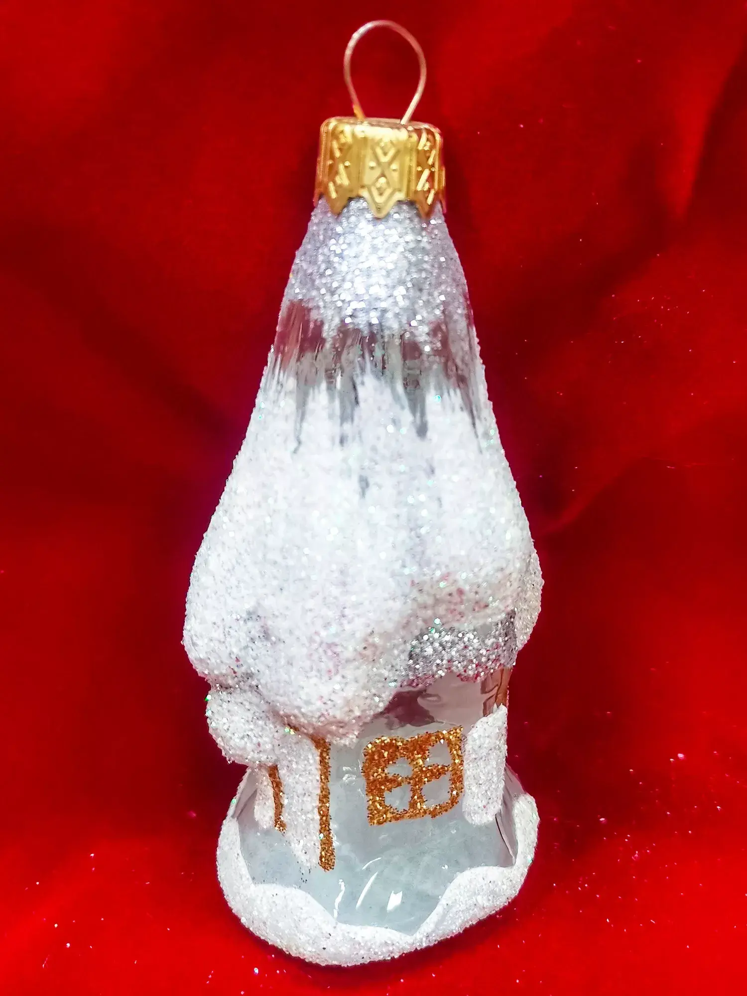 Украшение Домик из стекла в форме уютной заснеженной избушки с такими теплыми и манящими окнами дополнит наряд любой лесной красавицы. А так же очень символичен в качестве подарка.