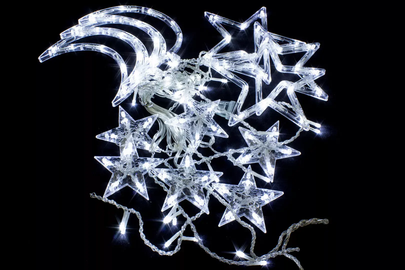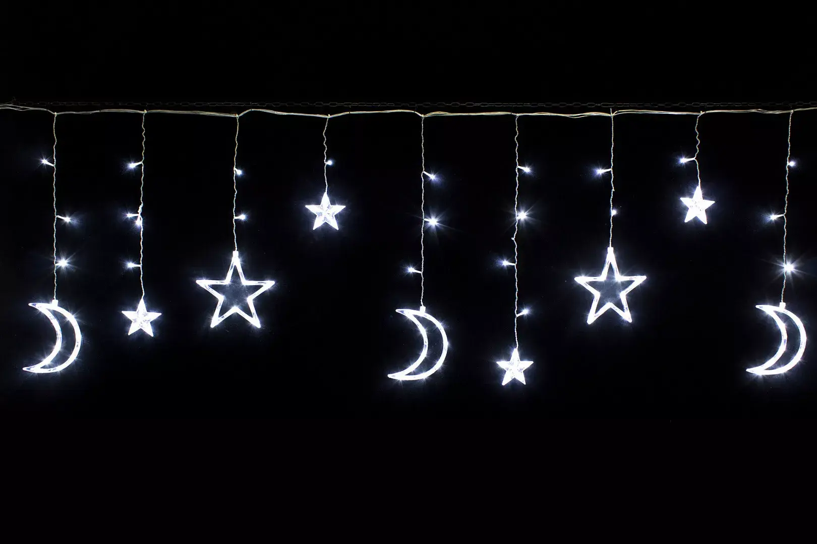 Яркая и оригинальная LED гирлянда бахрома холодного свечения c фигурами в виде звезд и лун, идеально подойдет для создания уютной атмосферы во время долгих зимних вечеров. Электрические гирлянды отличаются повышенной яркостью и долгим сроком службы. Конструкция светодиодной гирлянды обеспечивает надежность и абсолютную безопасность в эксплуатации.