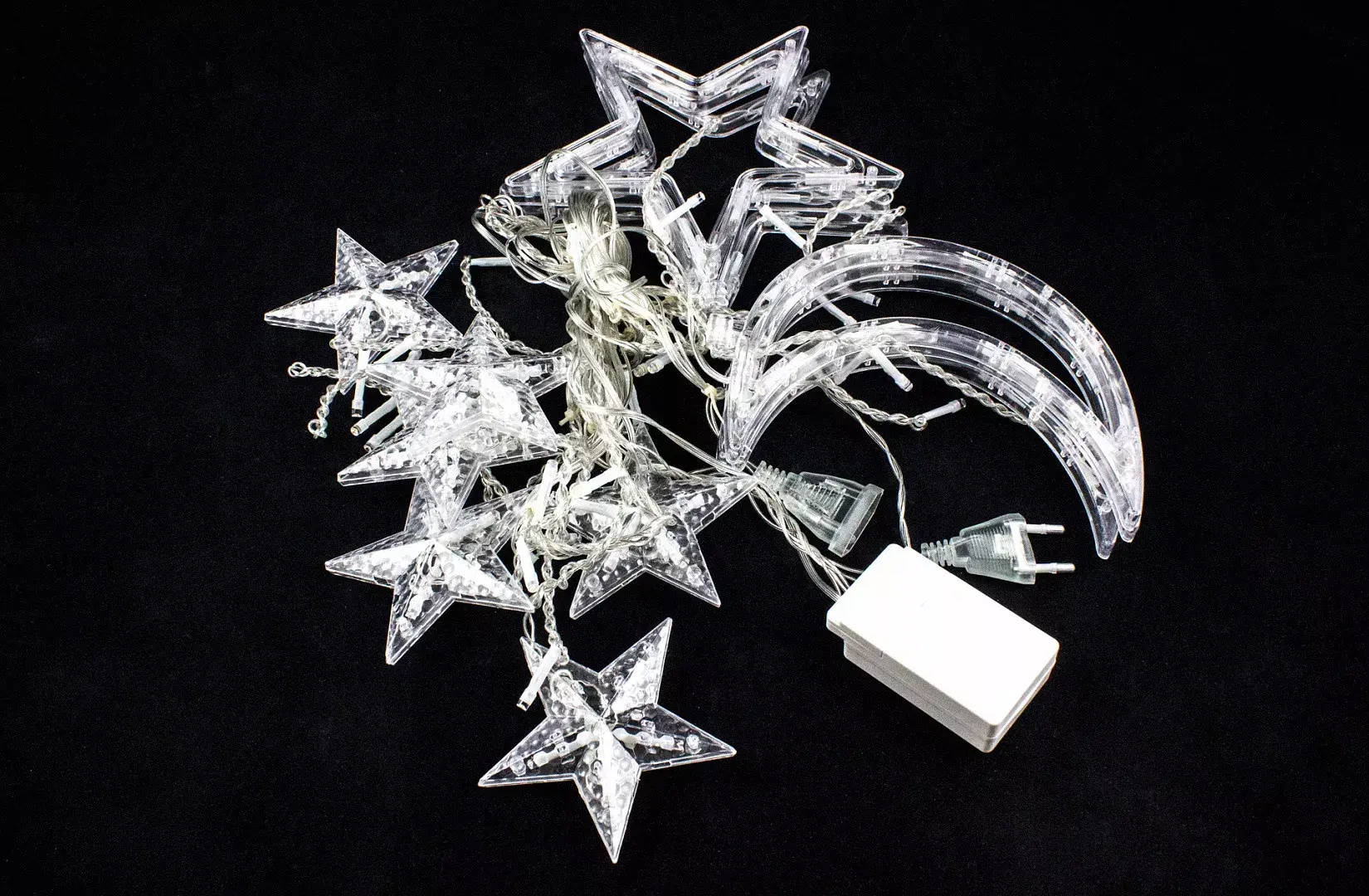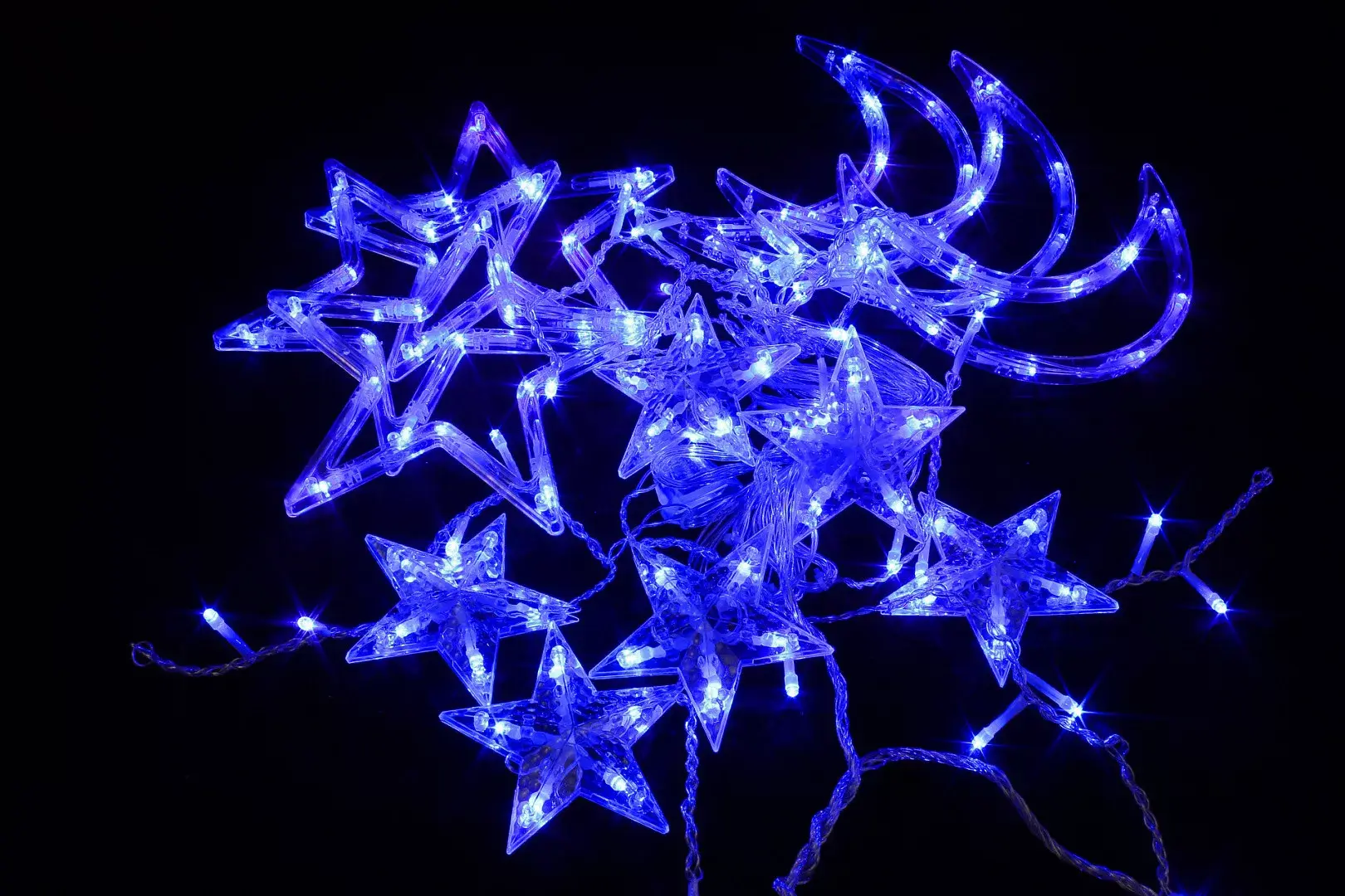 Яркая и оригинальная LED гирлянда бахрома синего свечения c фигурами в виде звезд и лун, идеально подойдет для создания уютной атмосферы во время долгих зимних вечеров. Электрические гирлянды отличаются повышенной яркостью и долгим сроком службы. Конструкция светодиодной гирлянды обеспечивает надежность и абсолютную безопасность в эксплуатации.