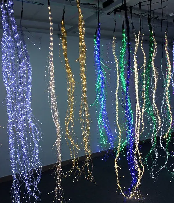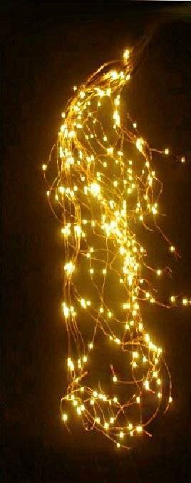 Гирлянда носит название "Конский хвост". Конструкция представляет собой множество нитей с лампочками LED соединенных на одном конце, что образует собой подобие конского хвоста. В конструкцию вплетен желтый шнур с диодами. Продукция полностью готова к применению и соответствует всем нормам безопасности.