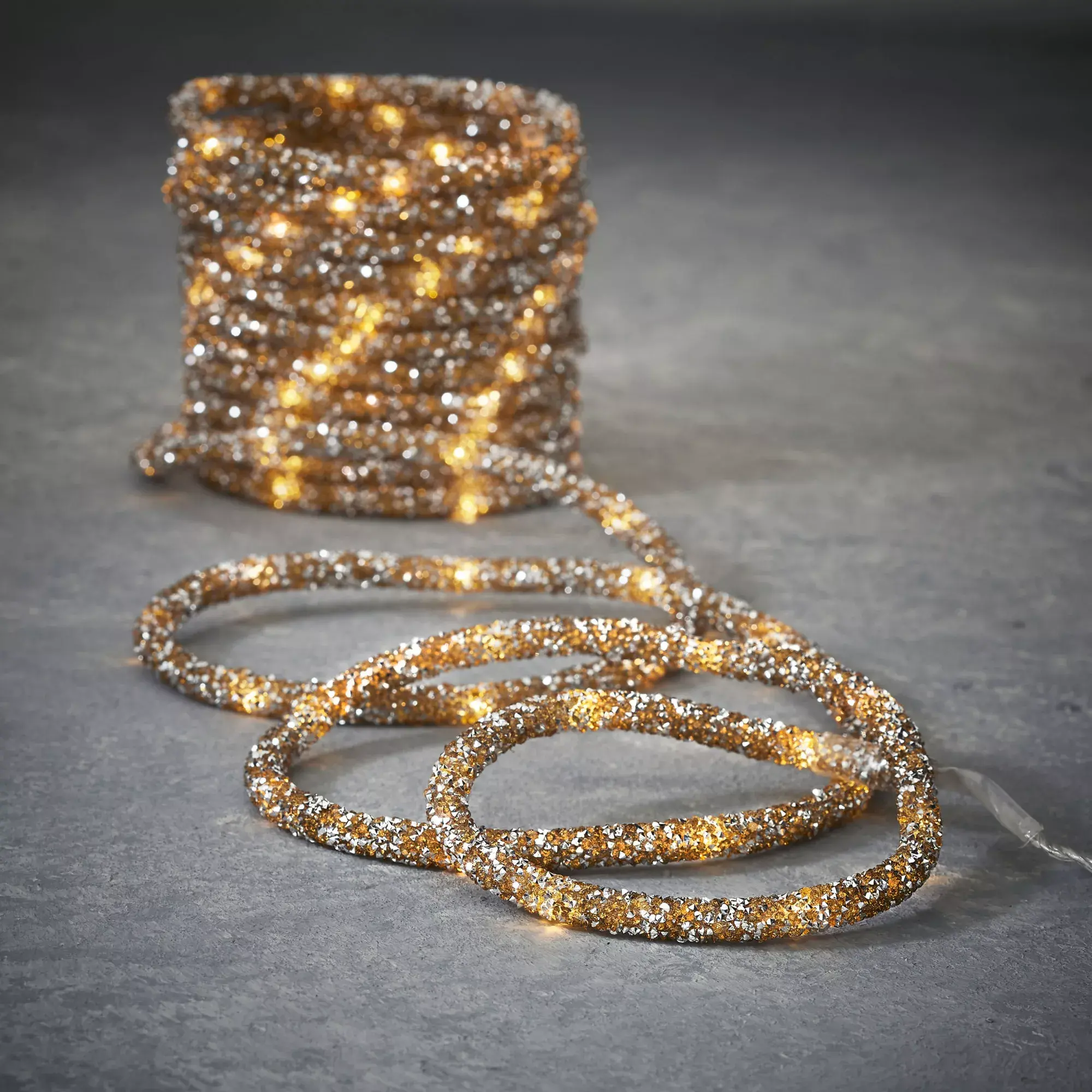 Светодиодная гирлянда имеет 8 функций свечения и подходит для наружного и внутреннего использования. Гирлянда состоит из 100 светодиодных лампочек, длина гирлянды с лампочками 5 метров, длина провода от розетки до лампочек 3 метра. Расстояние между лампочками 5 см.