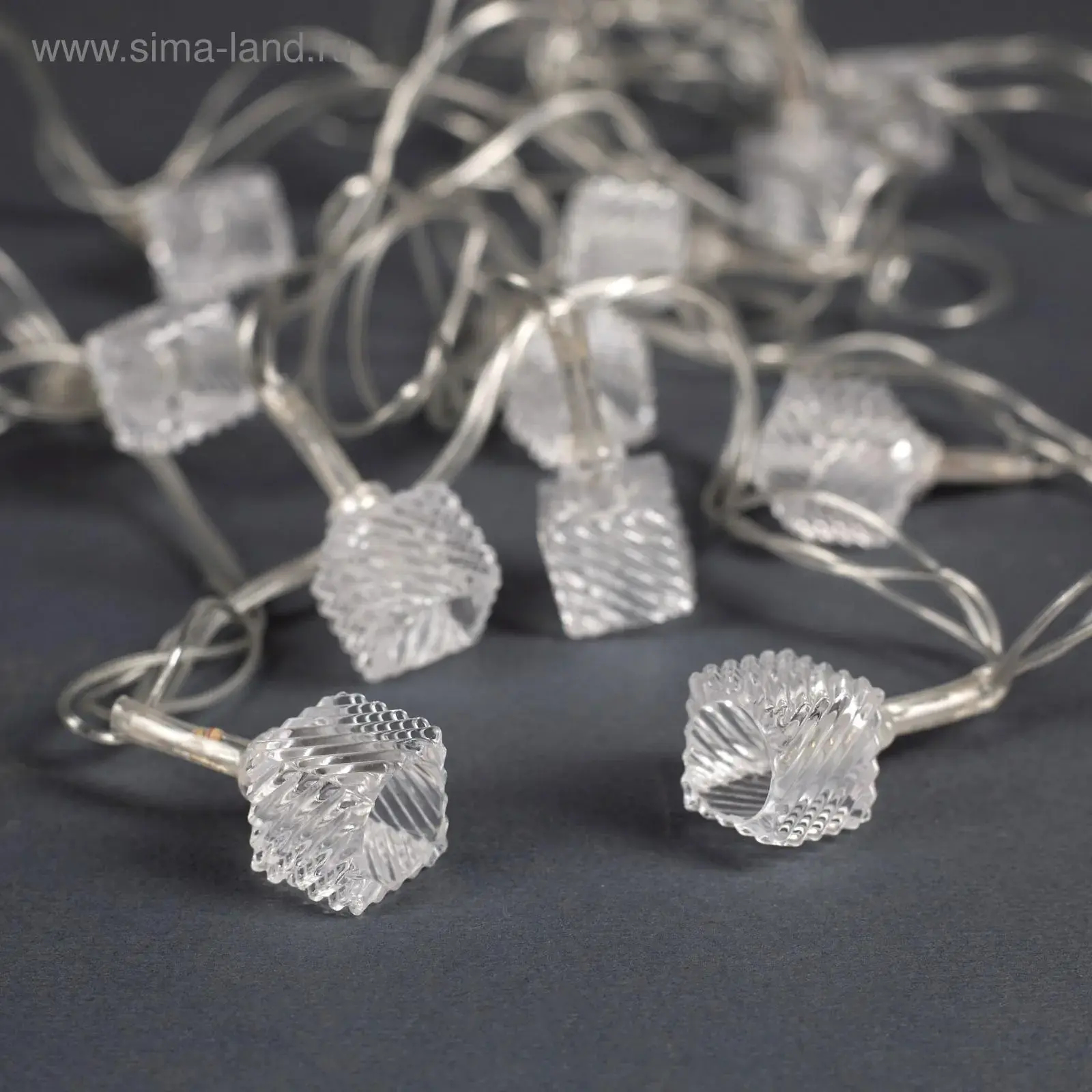 Если вы поклонник неожиданных решений, то мы спешим обрадовать вас шикарной новинкой – гирляндой с необычным названием «Кубики тающие». Оно словно соткана настоящим кудесником из 20 эффектно мигающих LED-ламп со свечением мульти и поражает воображение креативным дизайном. Гирлянда длиной 5 метров предназначена для украшения помещений. Она с легкостью впишется в любой интерьер и преобразит его до неузнаваемости.