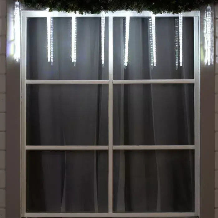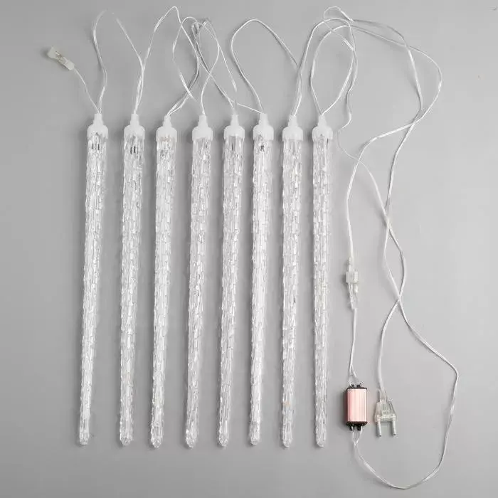 Весна в Новый год бывает не только в сказке «Двенадцать месяцев»! Фирма Luazon Lighting представляет вашему вниманию оригинальное изделие – гирлянду в виде рифленых сосулек из 288 LED-ламп с завораживающим эффектом стекания. Сосульки прикреплены к прозрачной нити. Уровень защиты – IP65. Мы предлагаем вам три цветовых решения – изысканный белый, яркий мульти и роскошный синий.