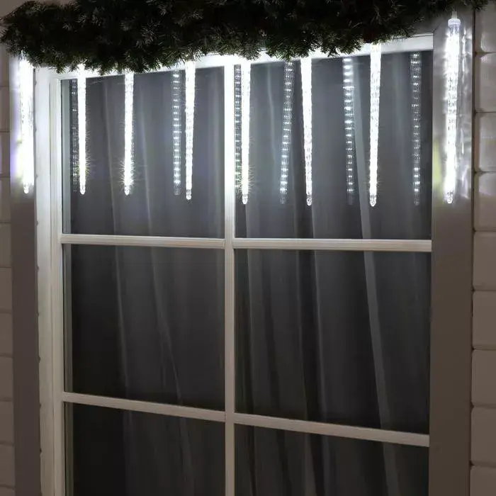 Весна в Новый год бывает не только в сказке «Двенадцать месяцев»! Фирма Luazon Lighting представляет вашему вниманию оригинальное изделие – гирлянду в виде рифленых сосулек из 288 LED-ламп с завораживающим эффектом стекания. Сосульки прикреплены к прозрачной нити. Уровень защиты – IP65. Мы предлагаем вам три цветовых решения – изысканный белый, яркий мульти и роскошный синий.